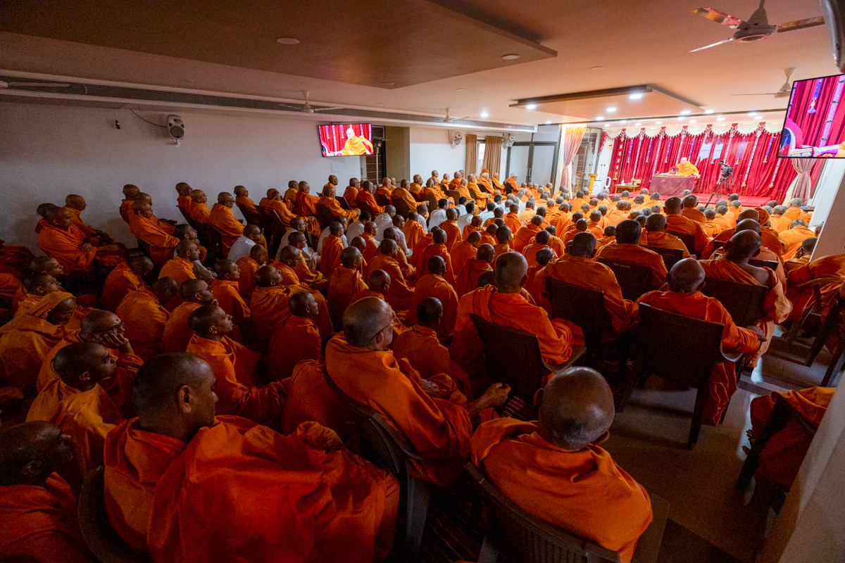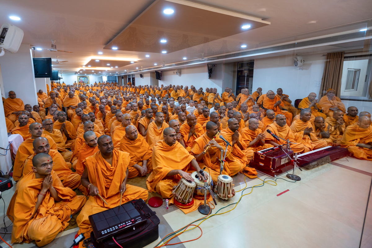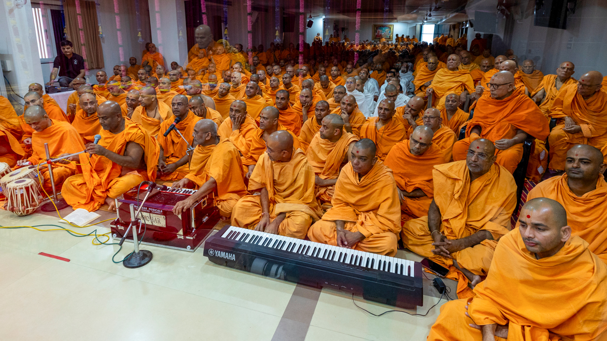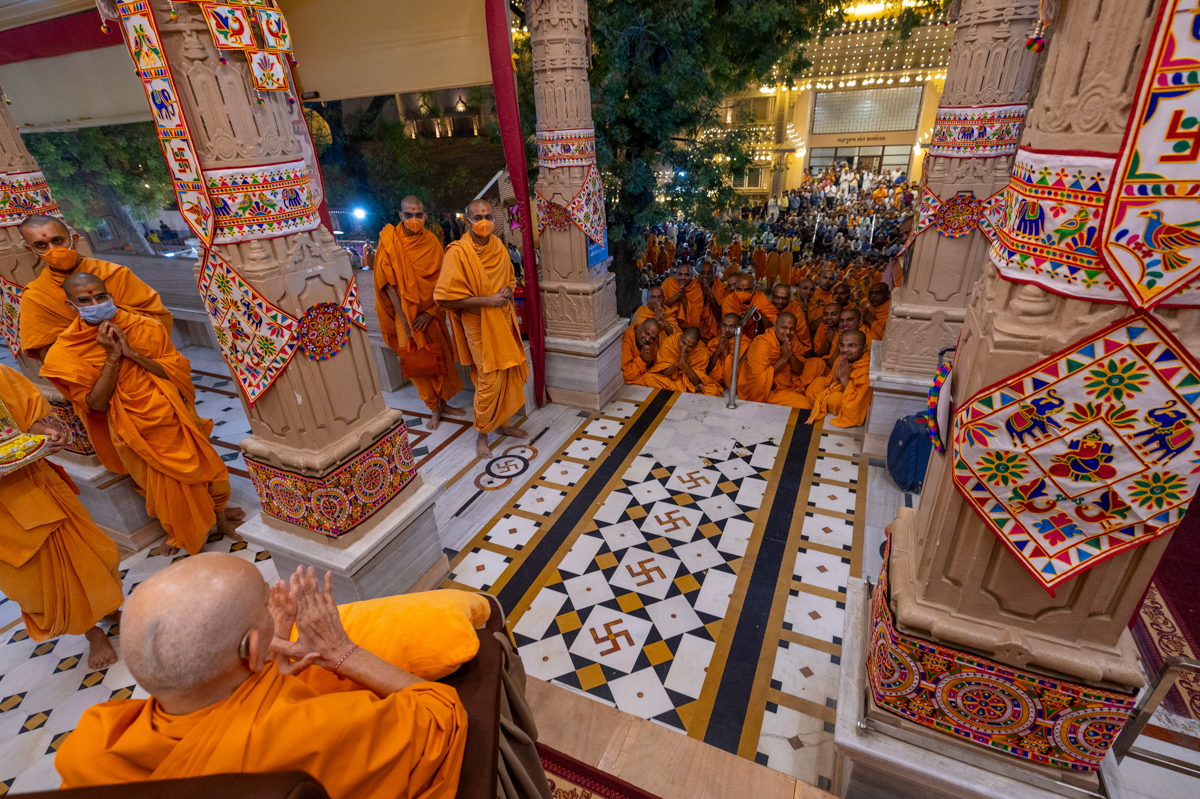 Swamis doing darshan of Swamishri in the evening