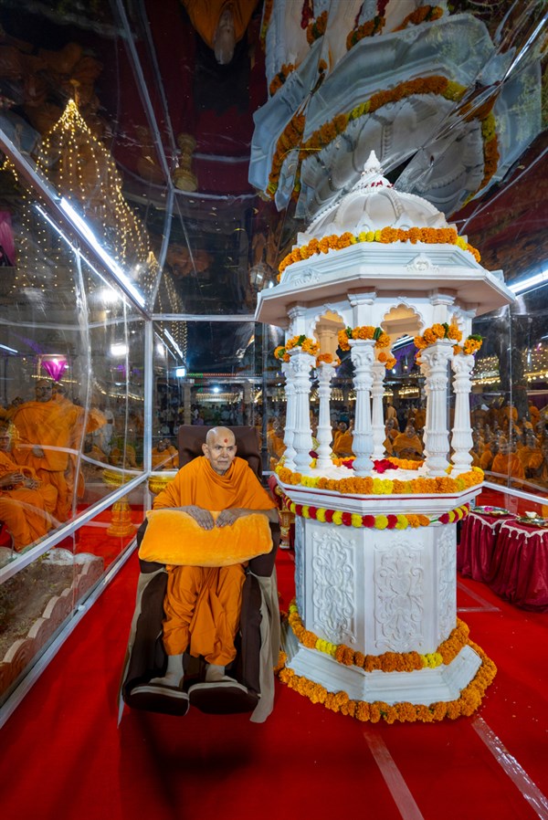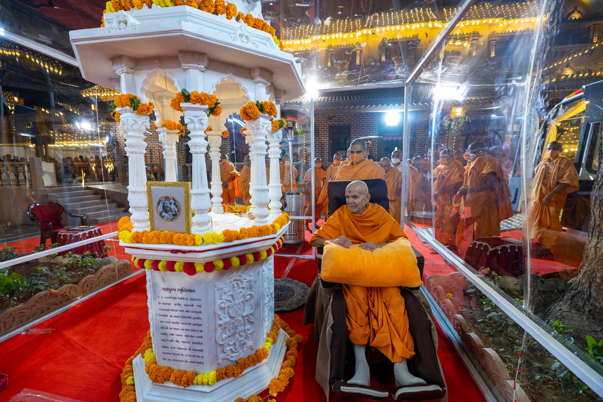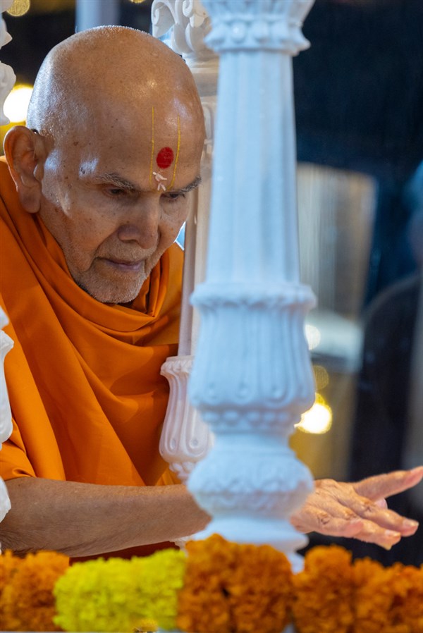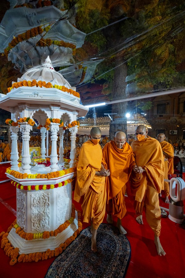 Swamishri performs pradakshina of the holy charanarvind of Bhagwan Swaminarayan