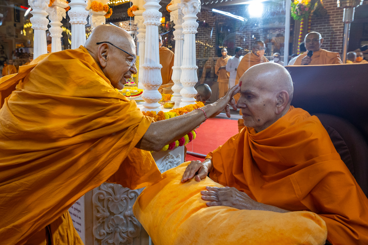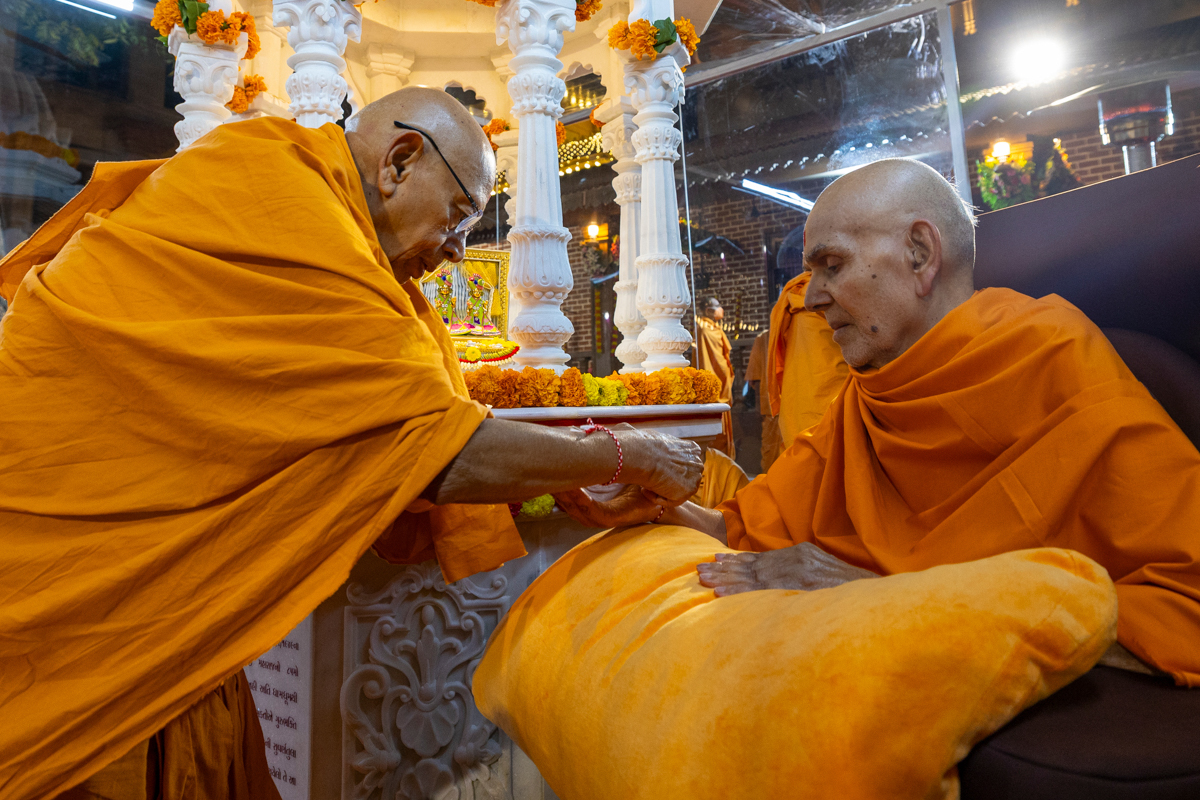 Pujya Tyagvallabh Swami ties a nadachhadi to Swamishri