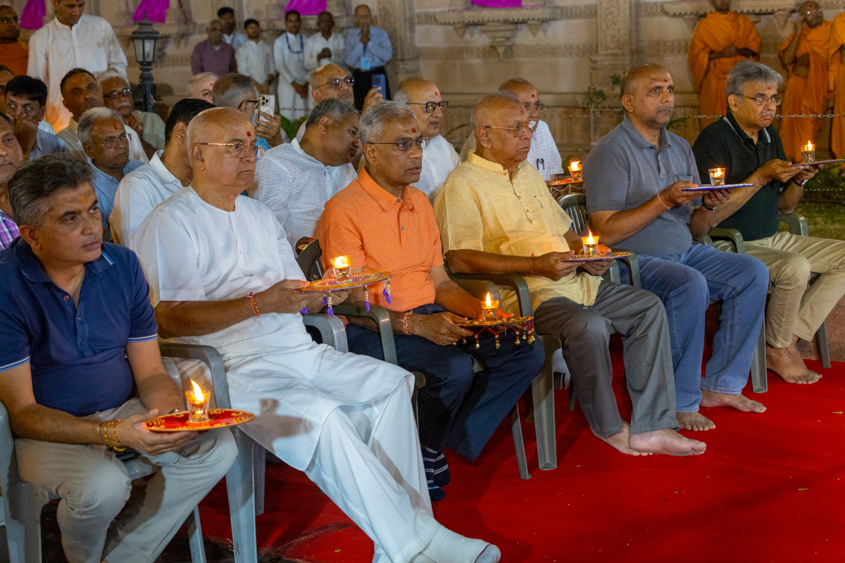Pujya Tyagvallabh Swami performs the arti