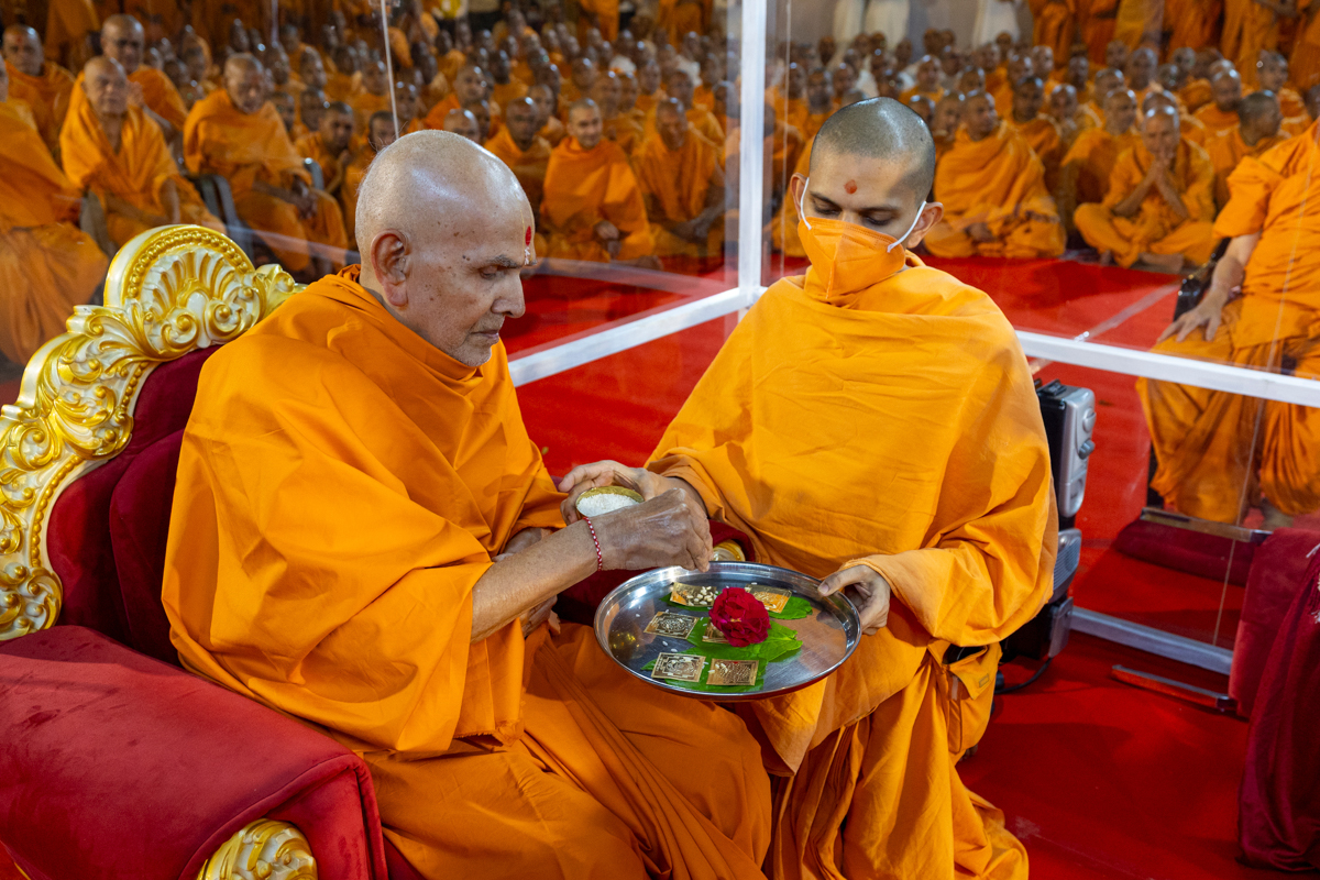 Swamishri offers mantra-pushpanjali