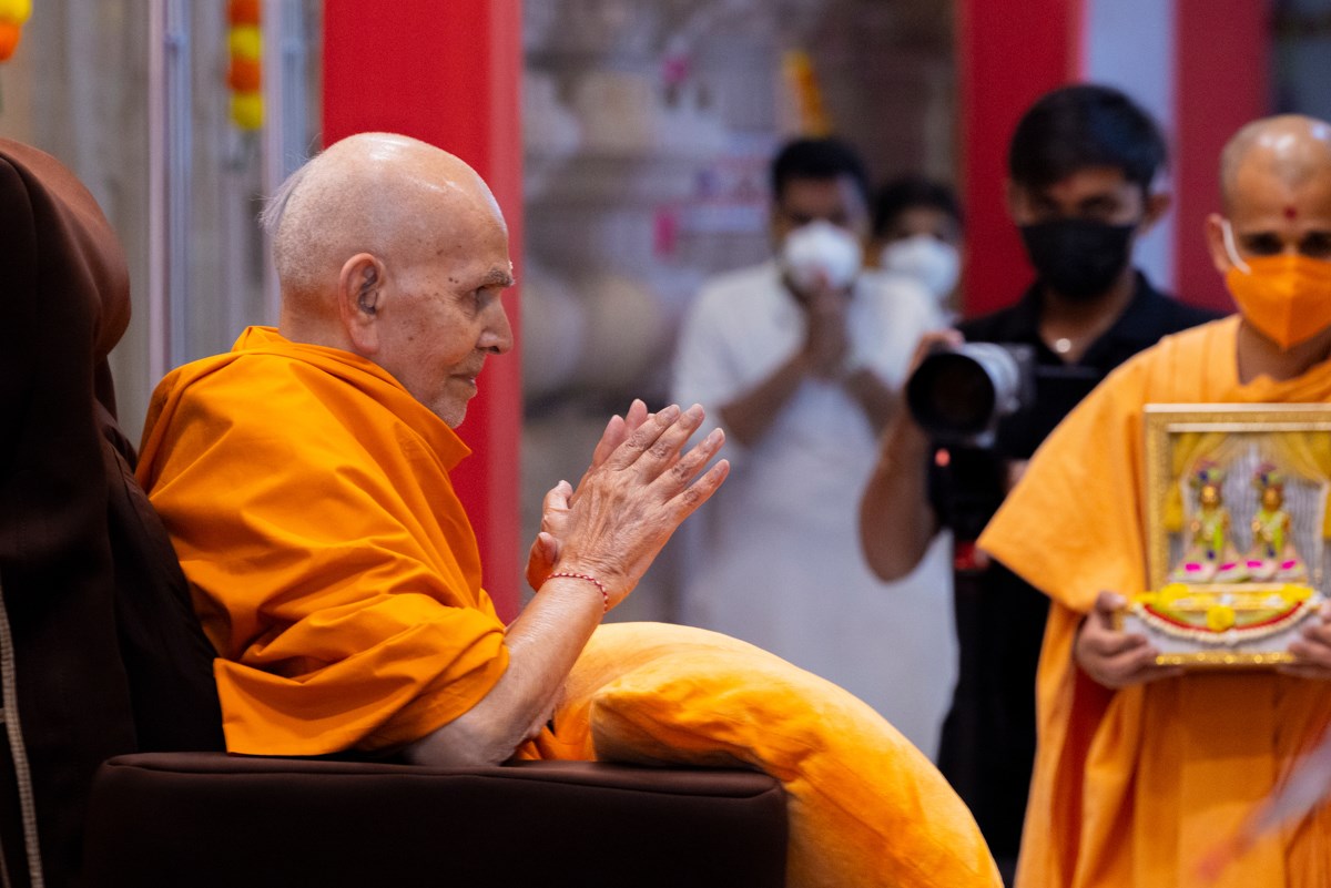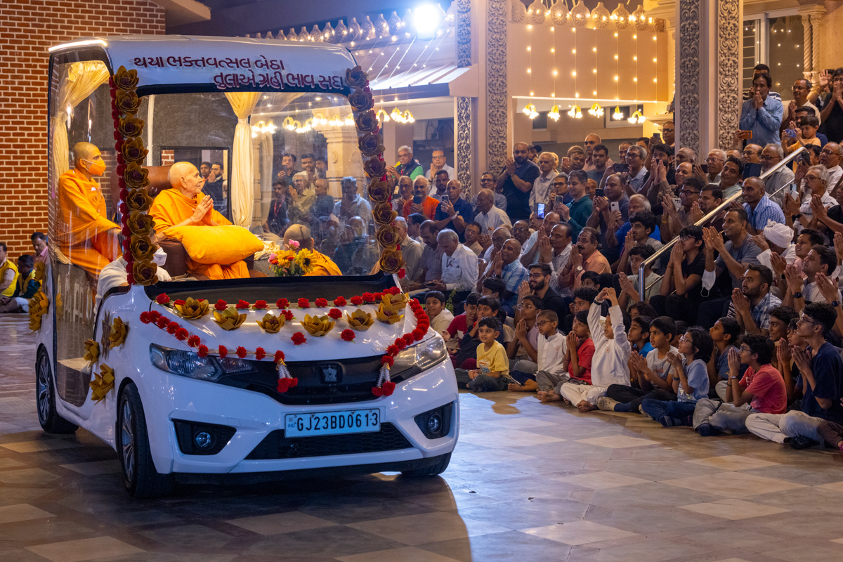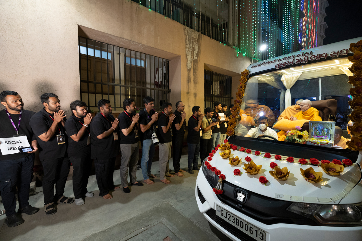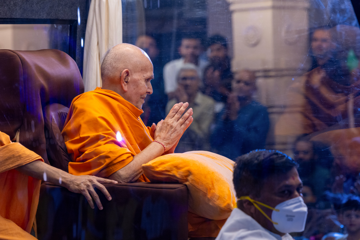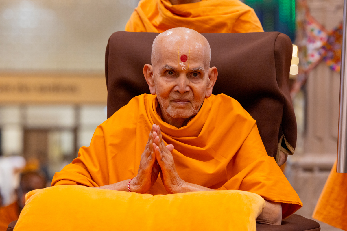 Swamishri greets all with folded hands