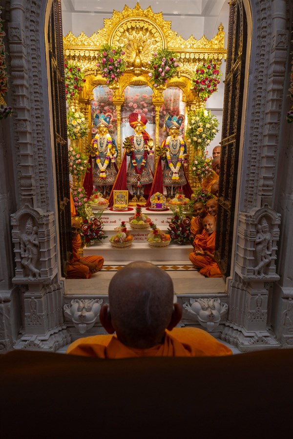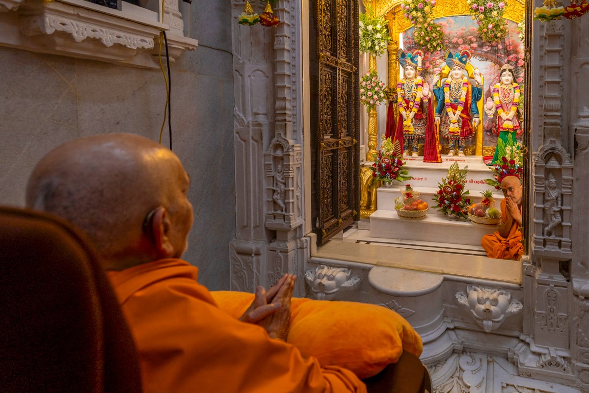 Swamis doing Swamishri's puja darshan