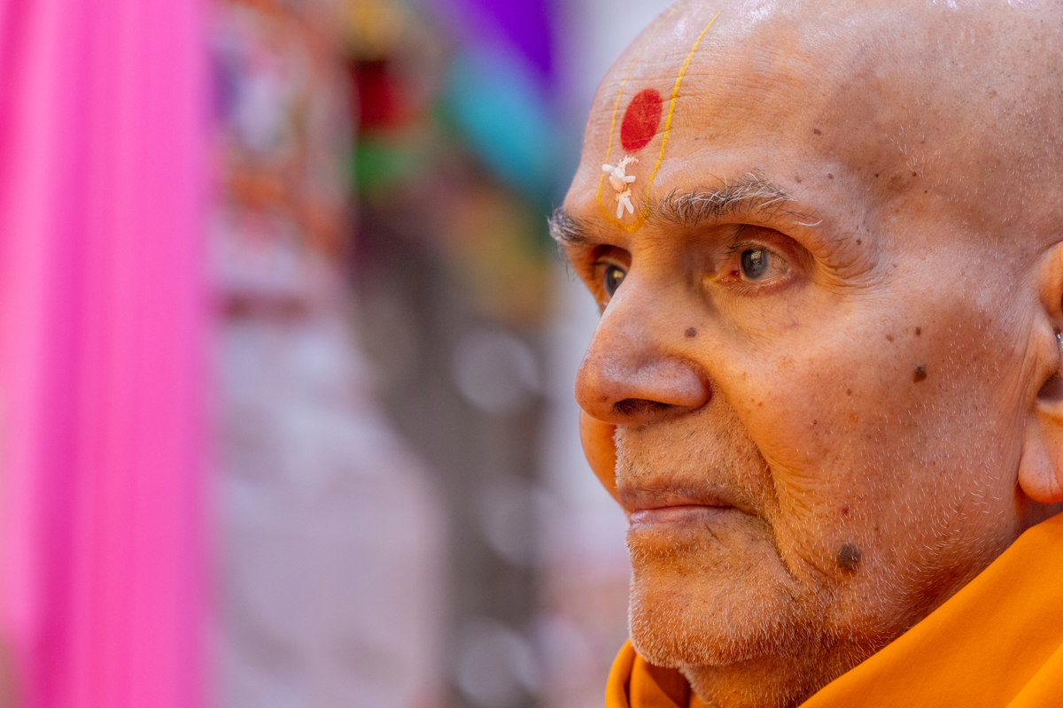 Swamishri engrossed in darshan of Shri Ghanshyam Maharaj