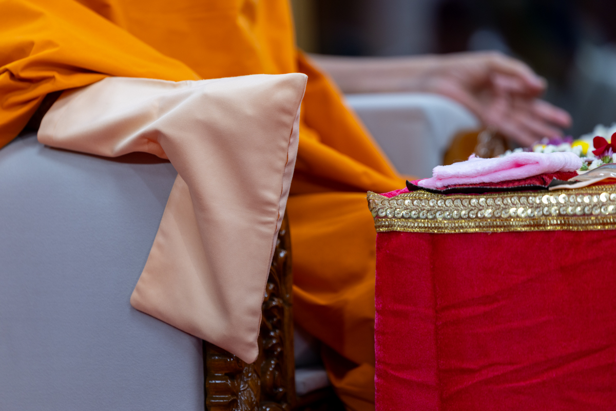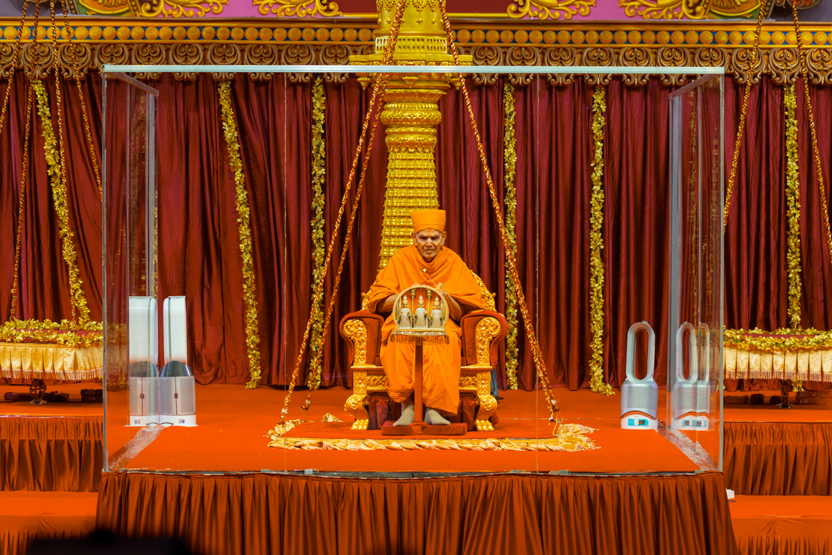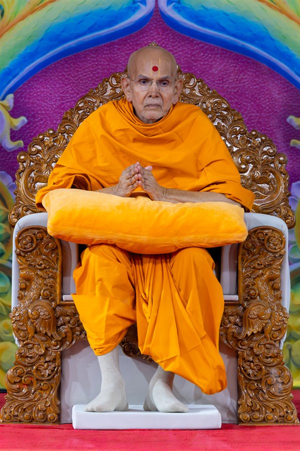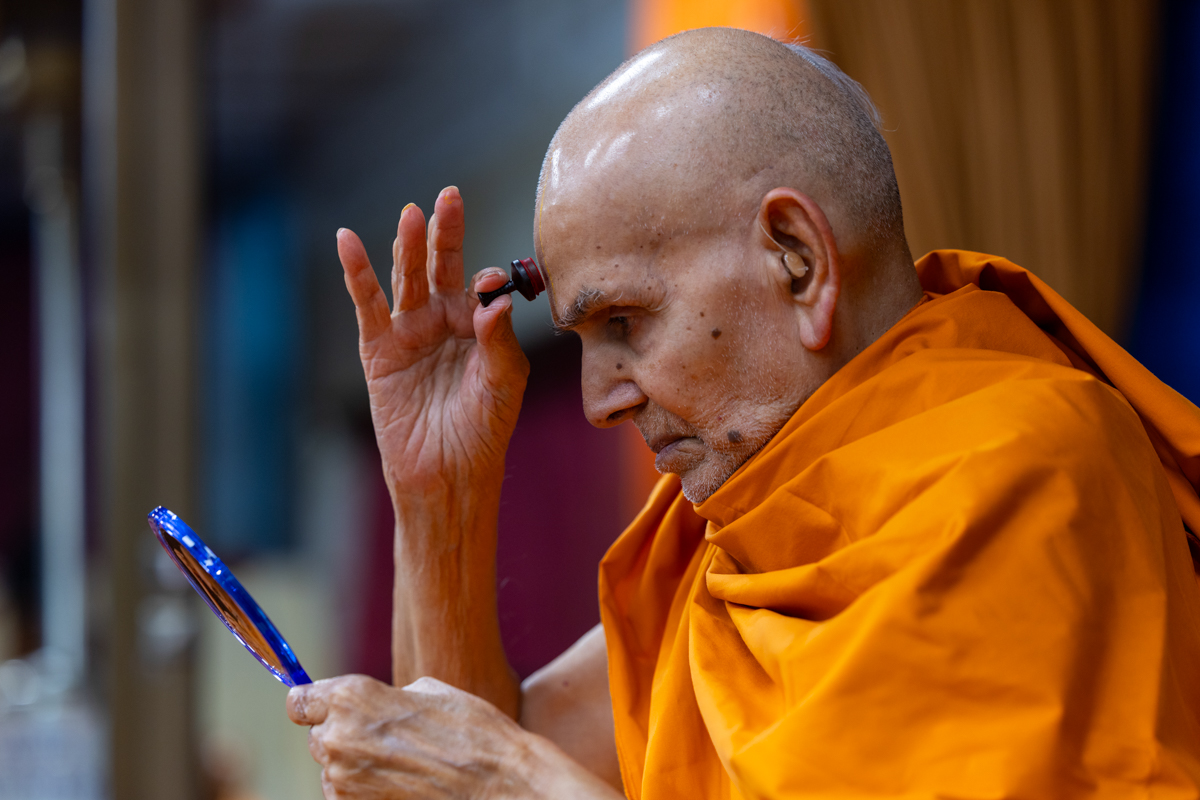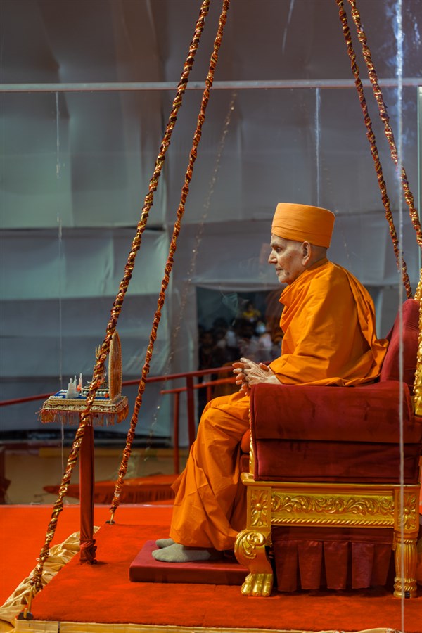 Param Pujya Mahant Swami Maharaj on his way to perform his daily puja