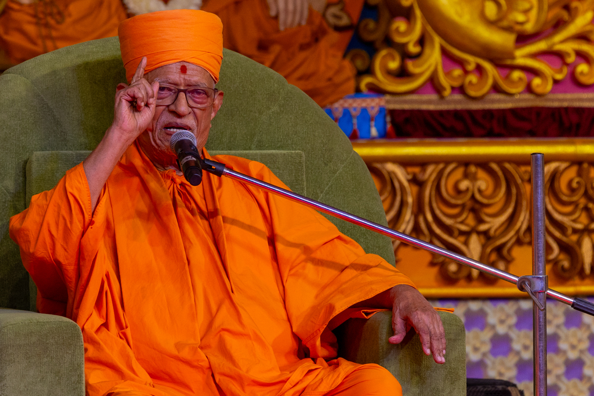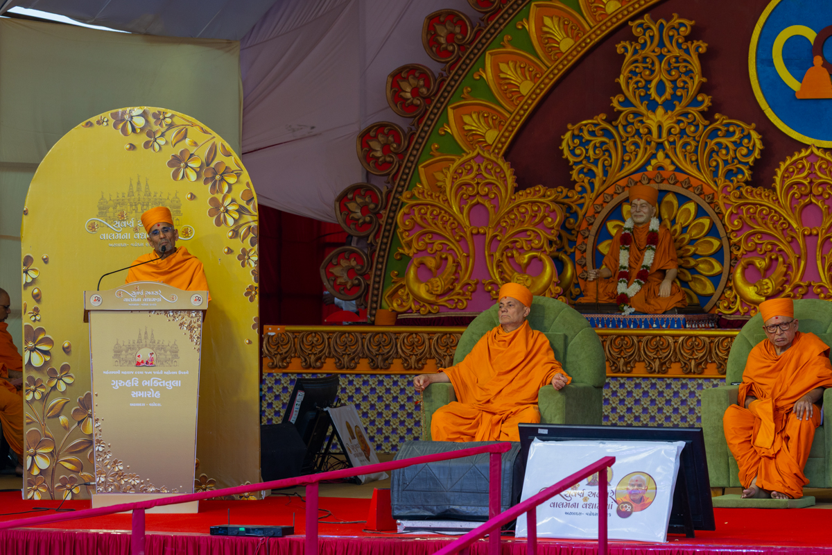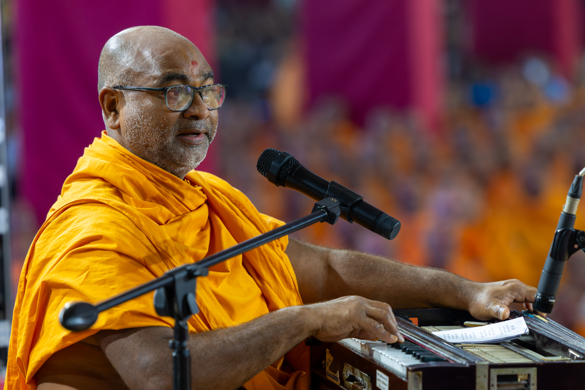 Pujya Swayamprakash Swami (Doctor Swami) addresses the assembly