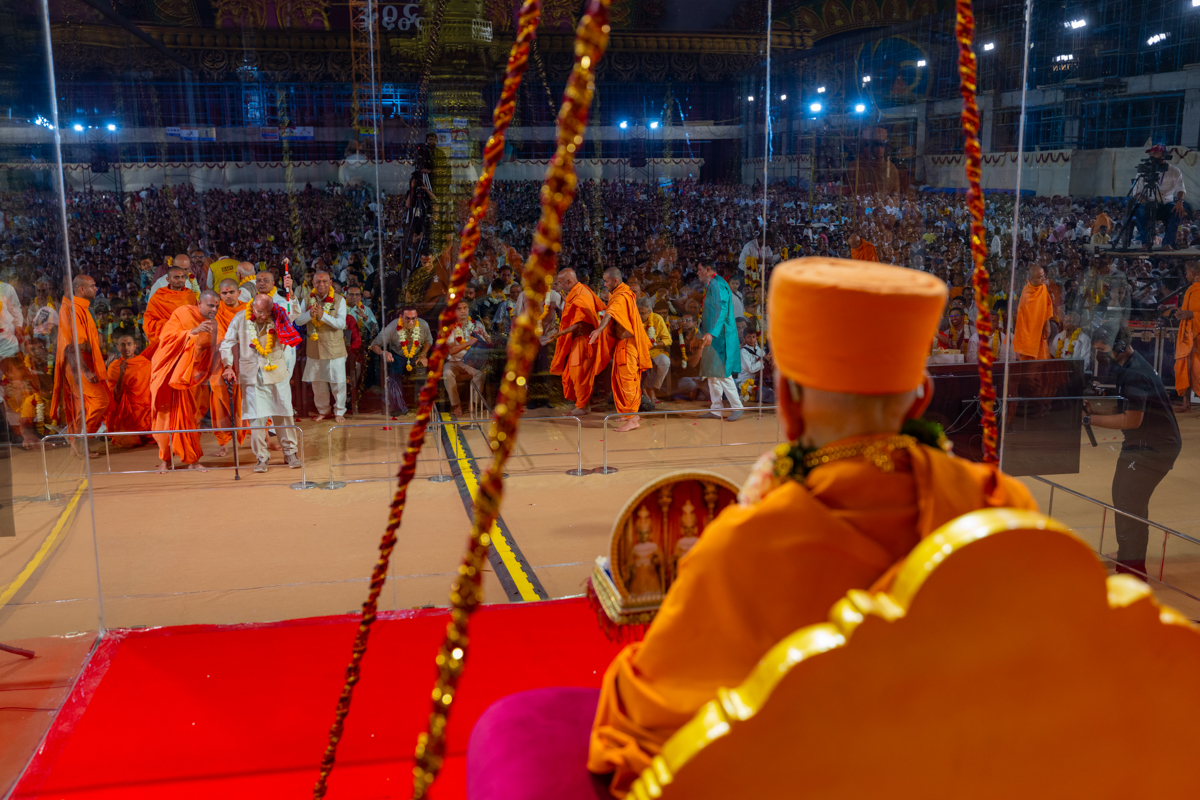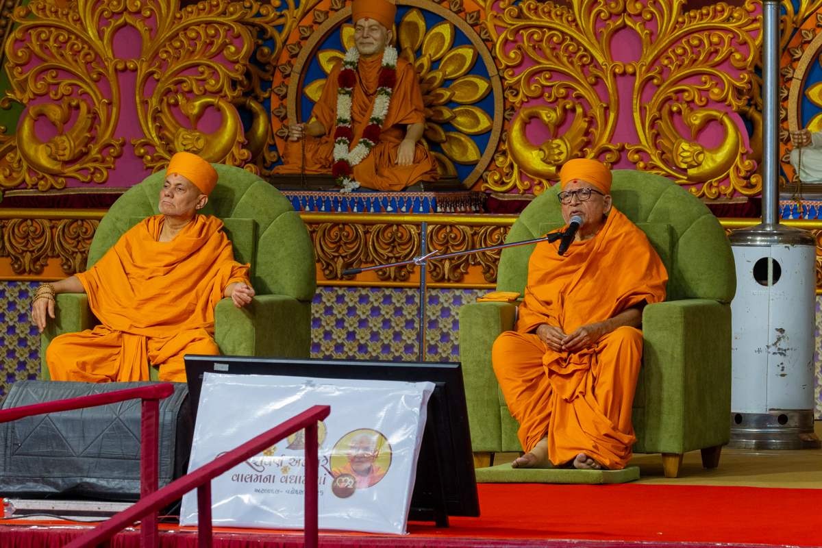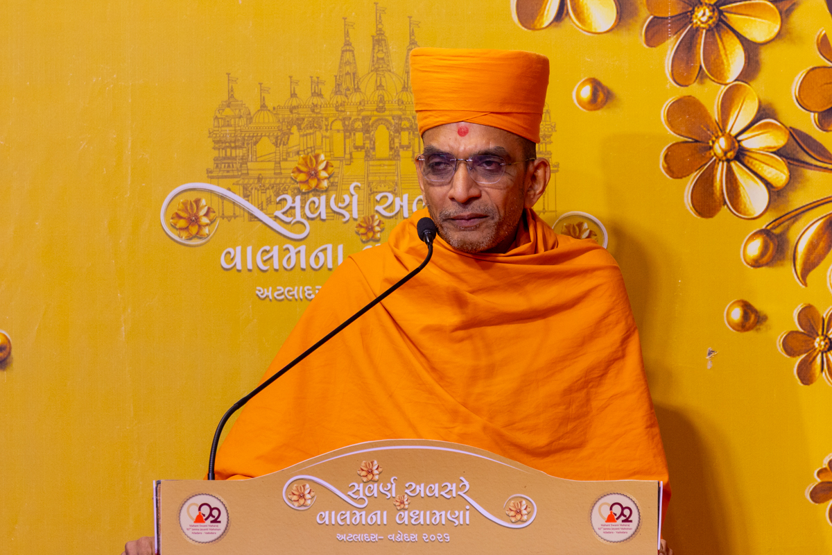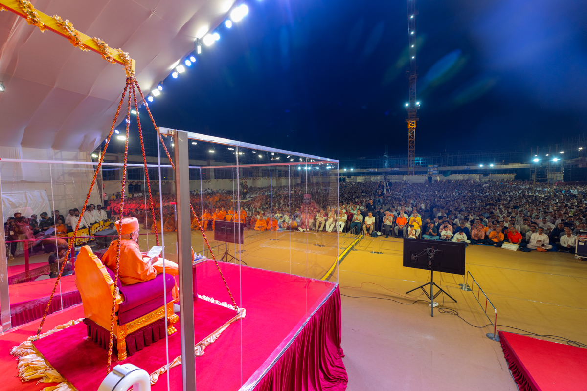 Pujya Swayamprakash Swami (Doctor Swami) addresses the assembly