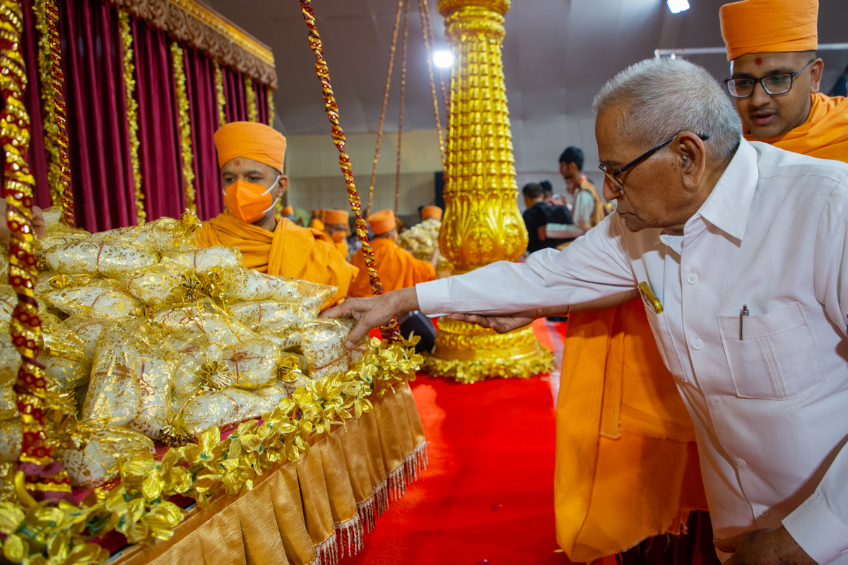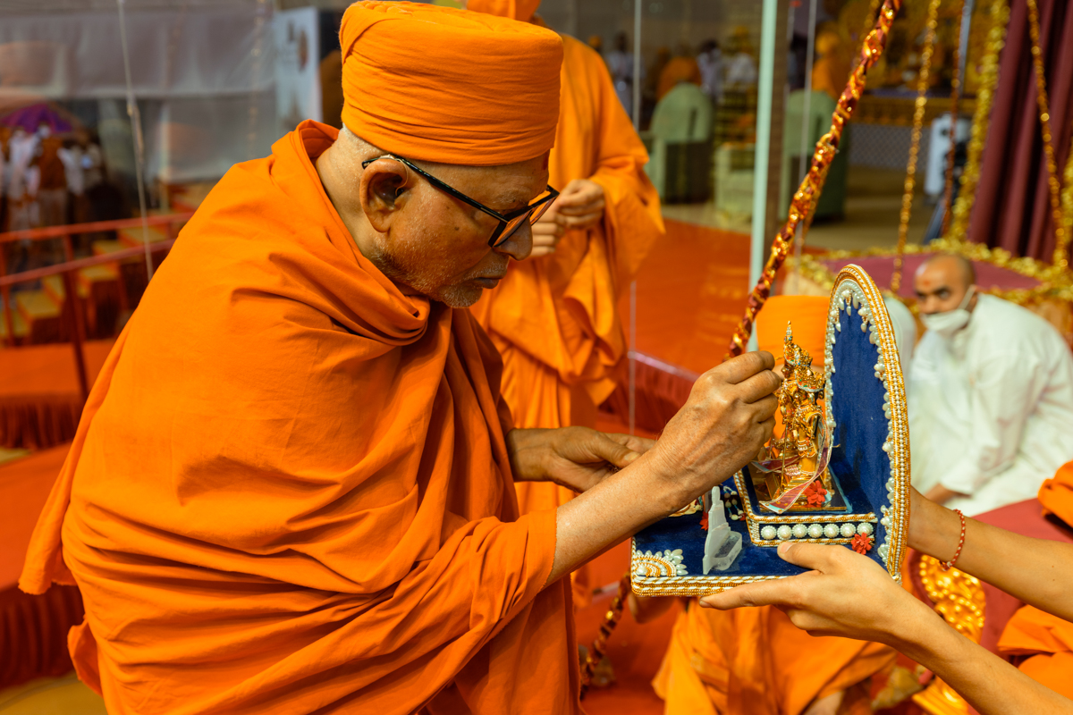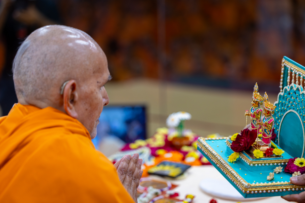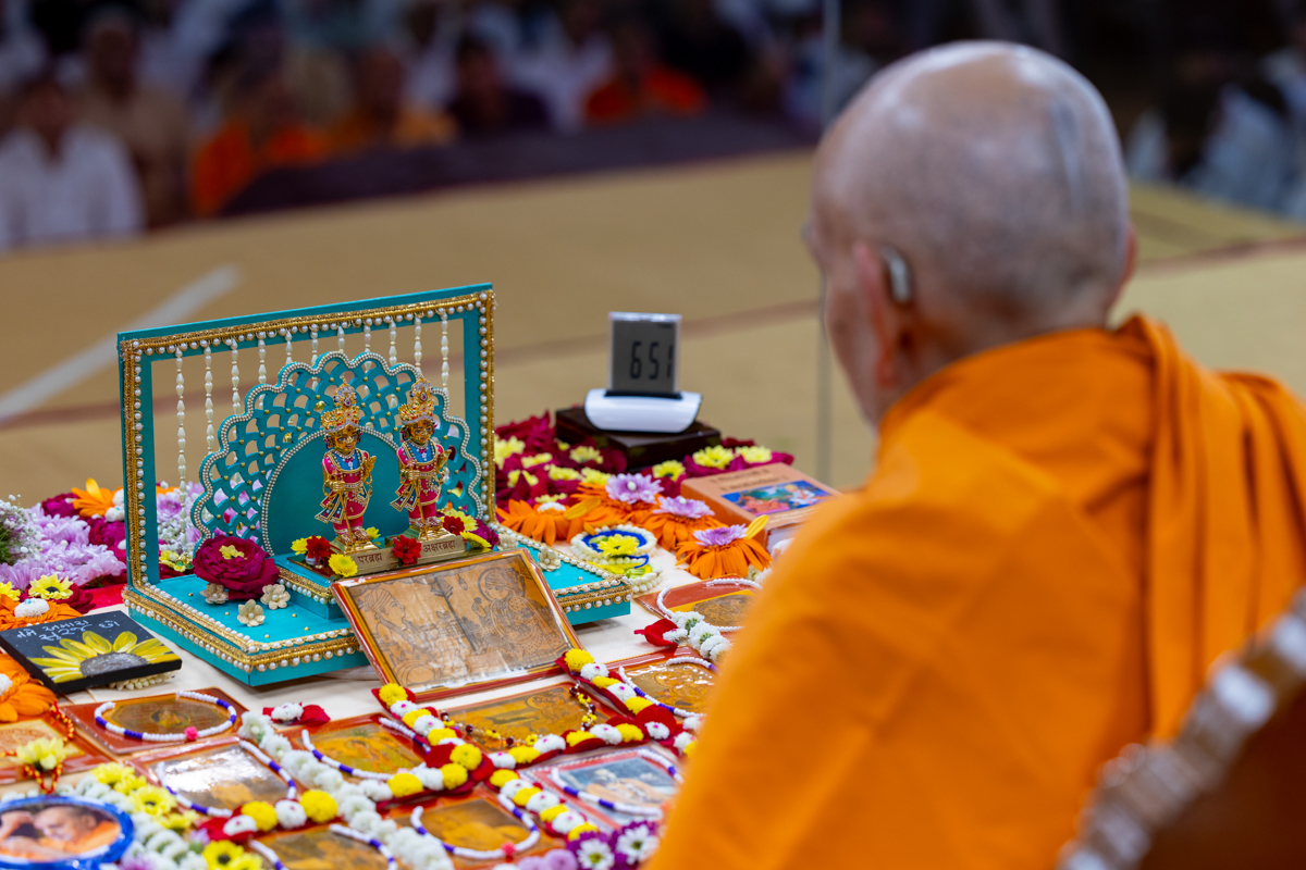 Pujya Kothari Swami performs pujan of Shri Harikrishna Maharaj and Shri Gunatitanand Swami Maharaj