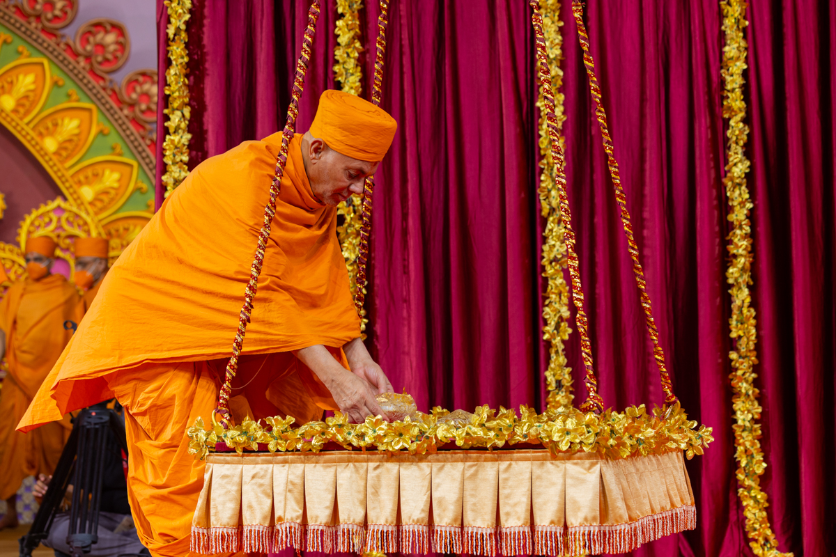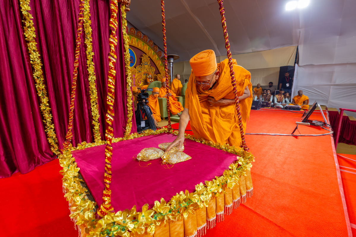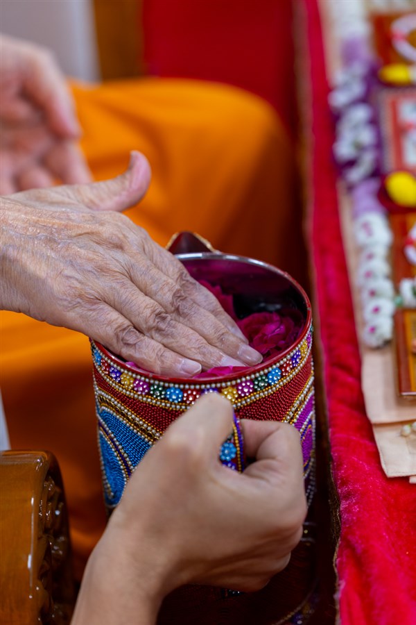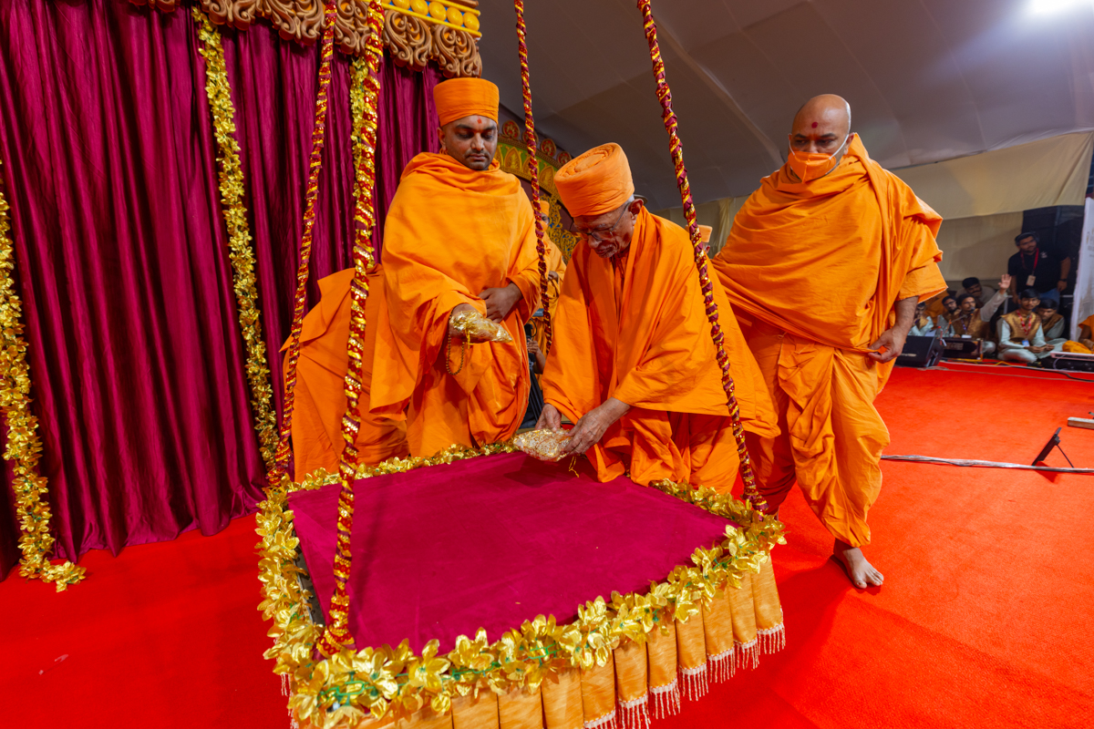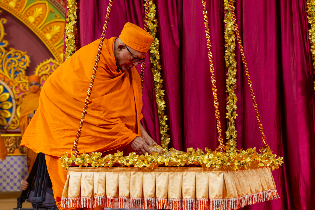 Pujya Kothari Swami performs pujan of Shri Harikrishna Maharaj and Shri Gunatitanand Swami Maharaj