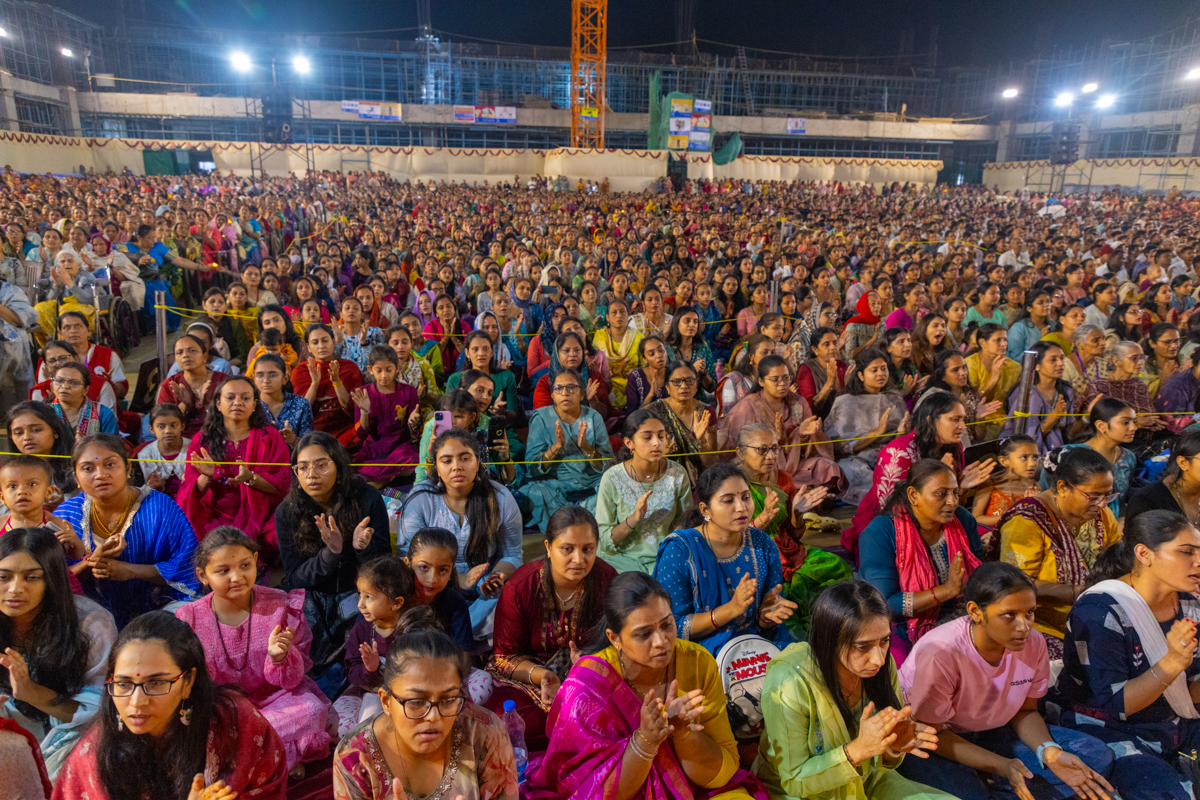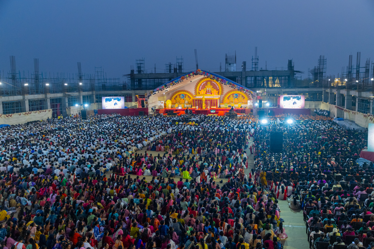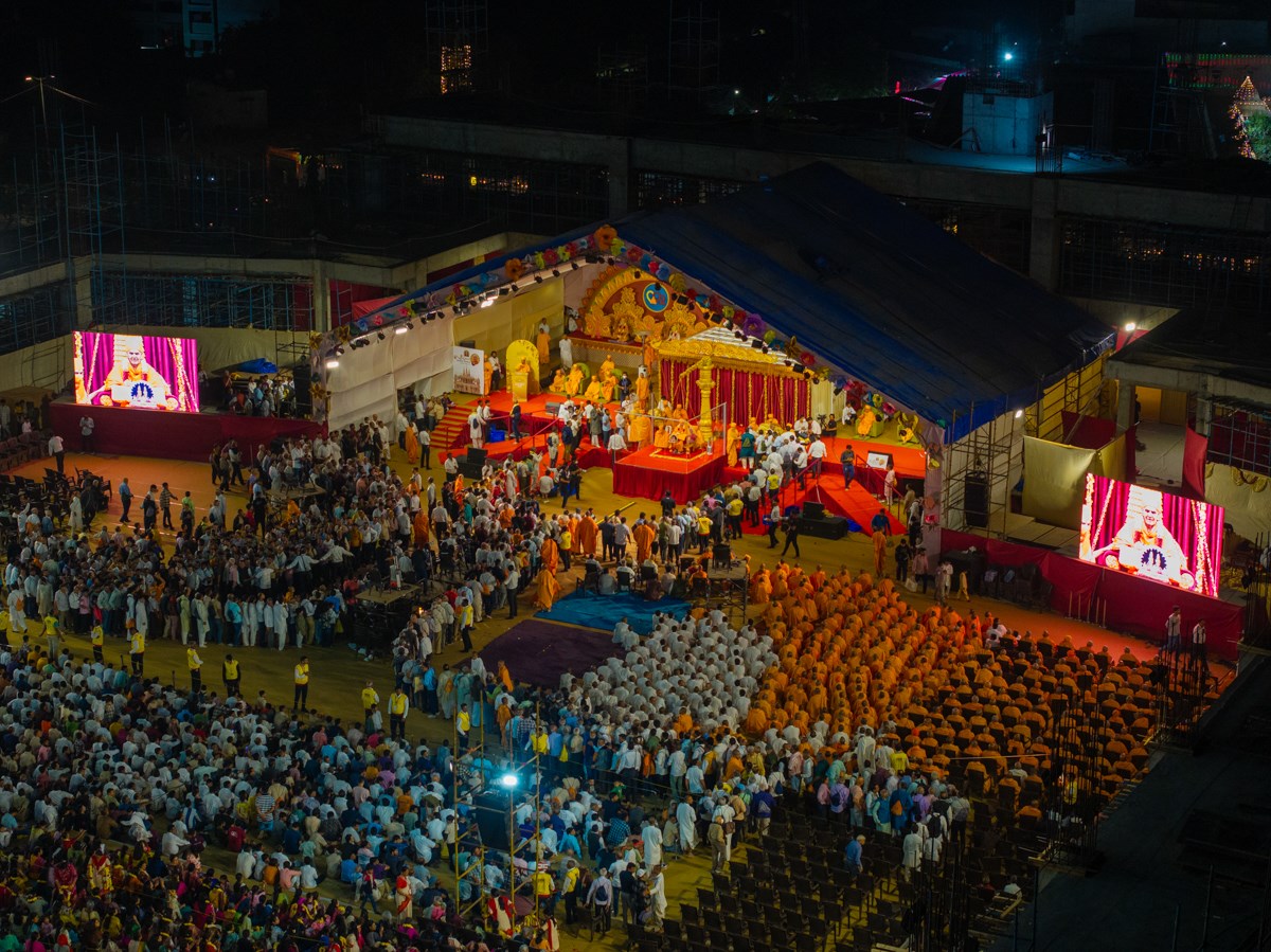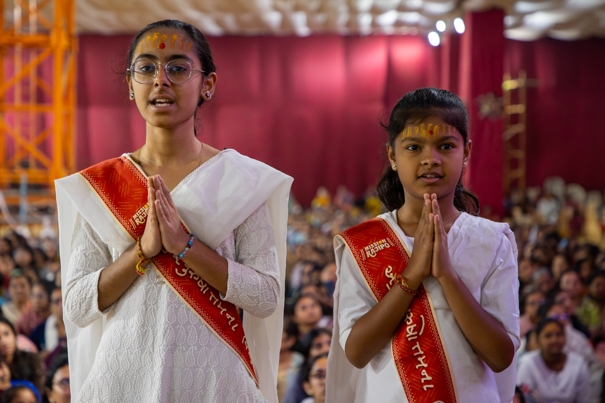 Yuvaks sing kirtans at the beginning of the evening 'Bhakti Tula' assembly