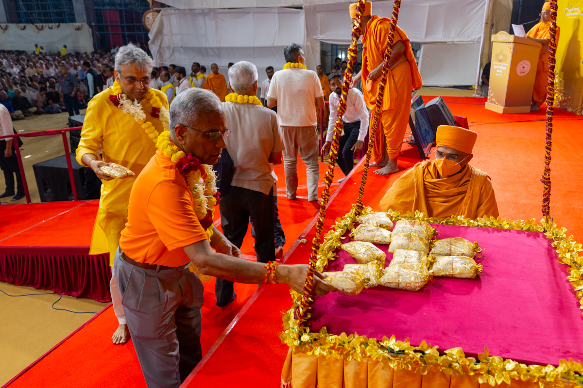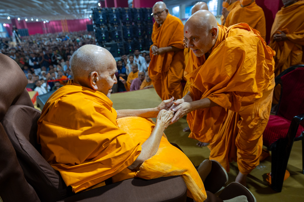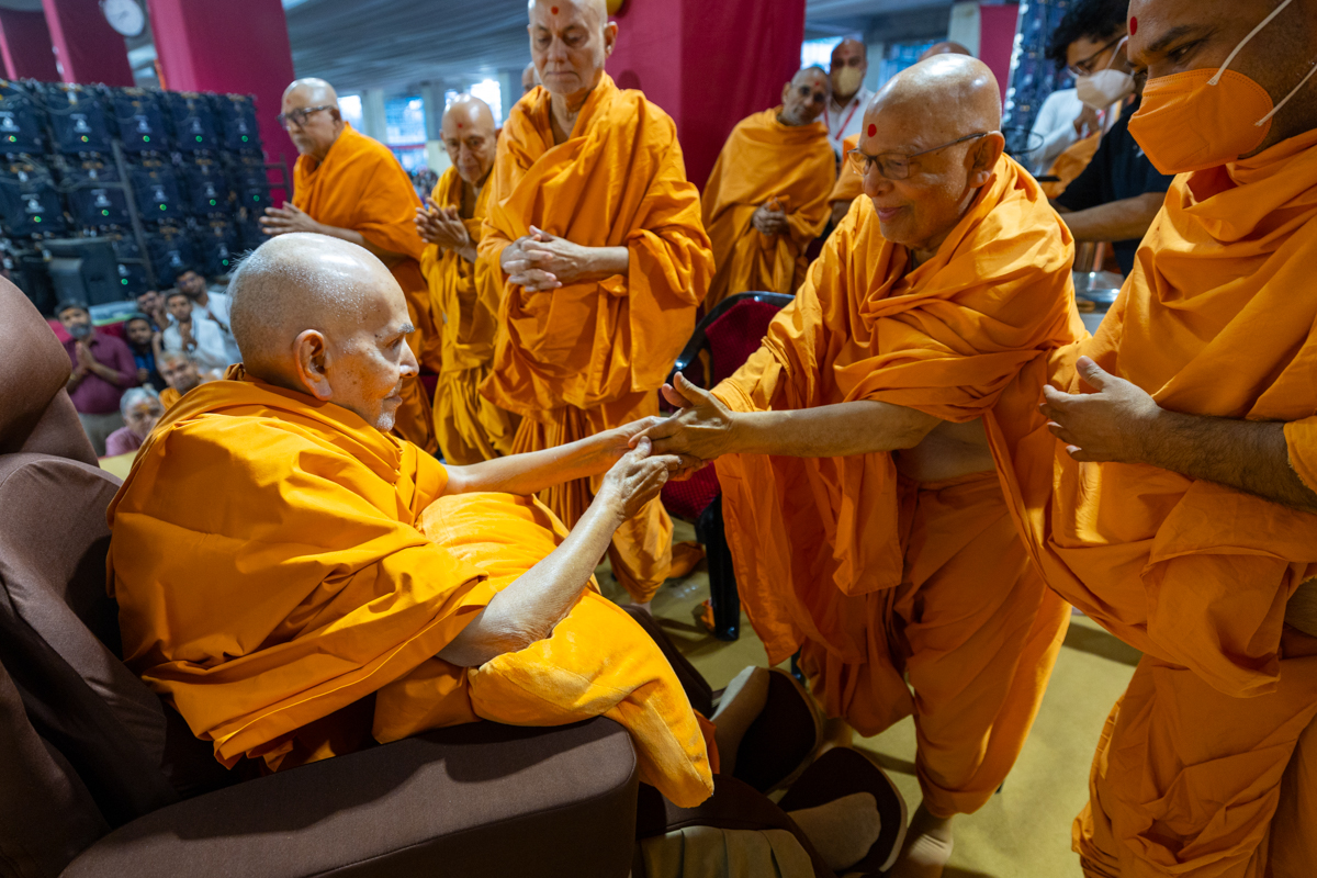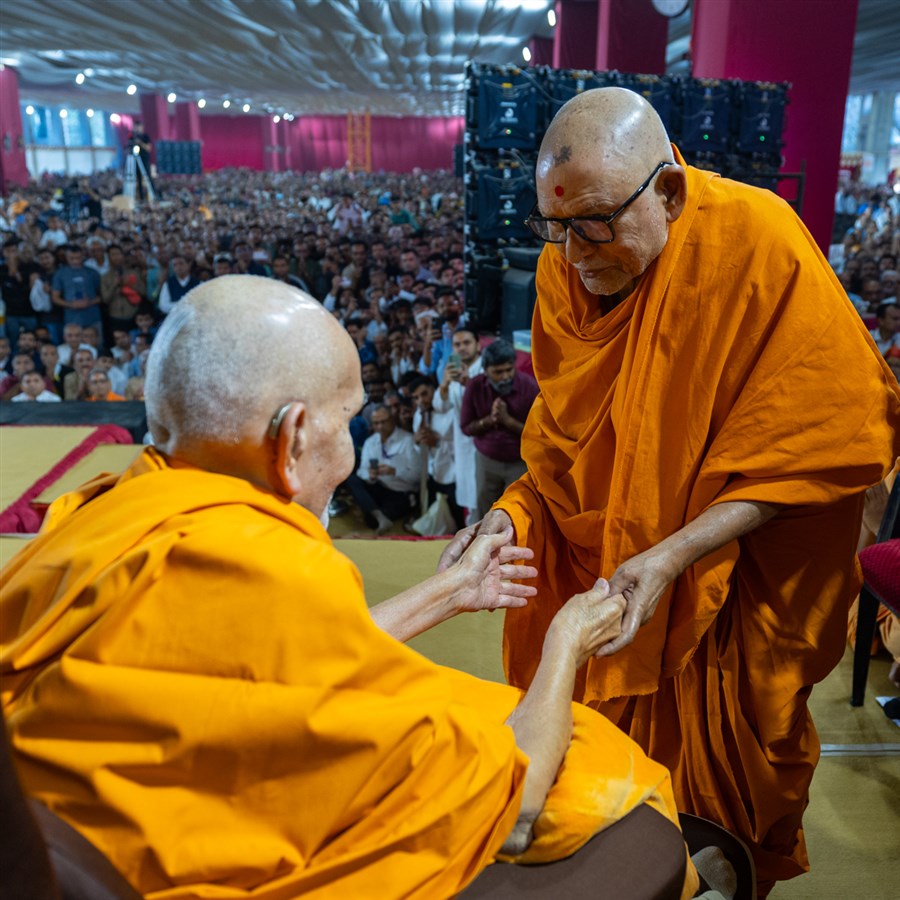 Pujya Bhaktipriya Swami (Kothari Swami) greets Swamishri