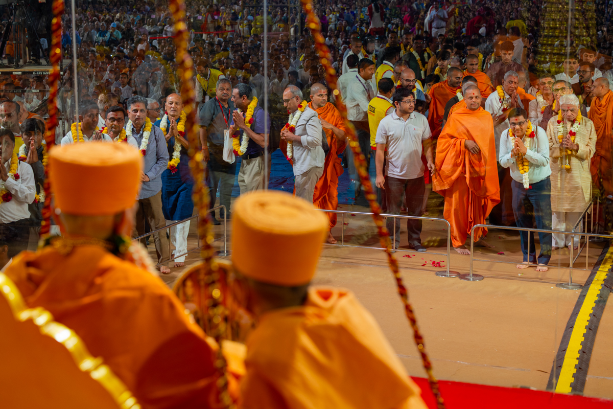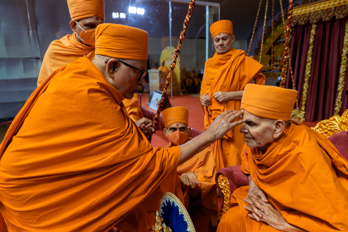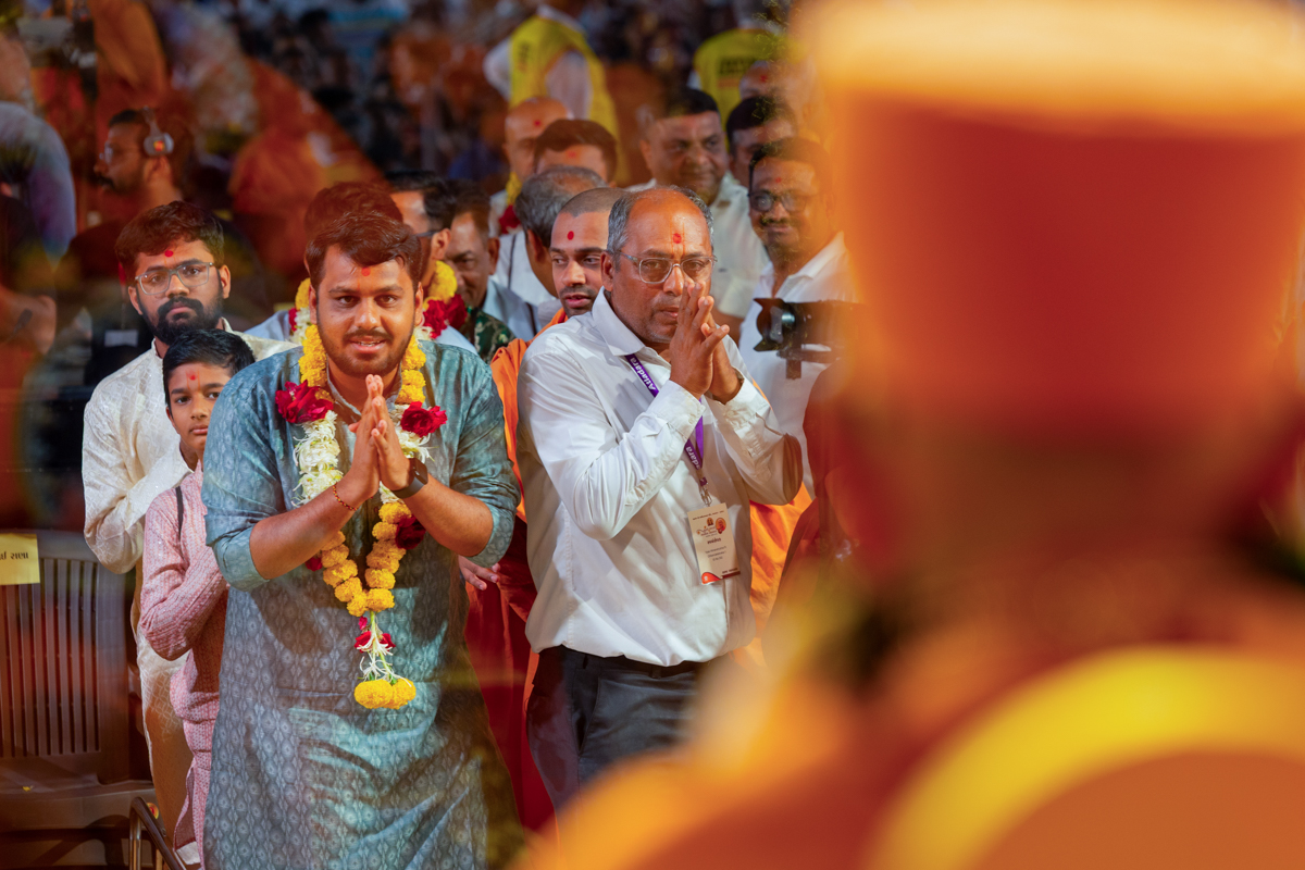 Pujya Bhaktipriya Swami (Kothari Swami) greets Swamishri