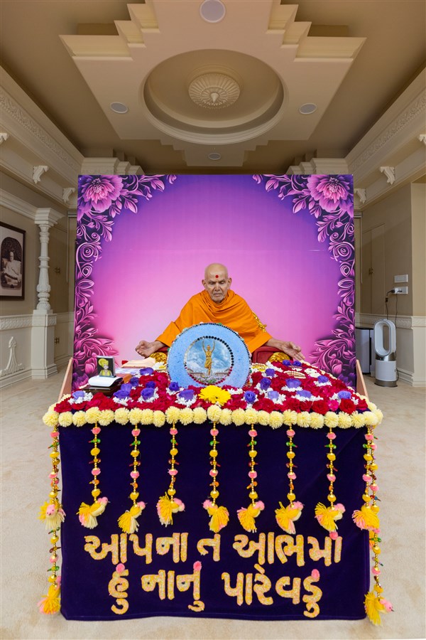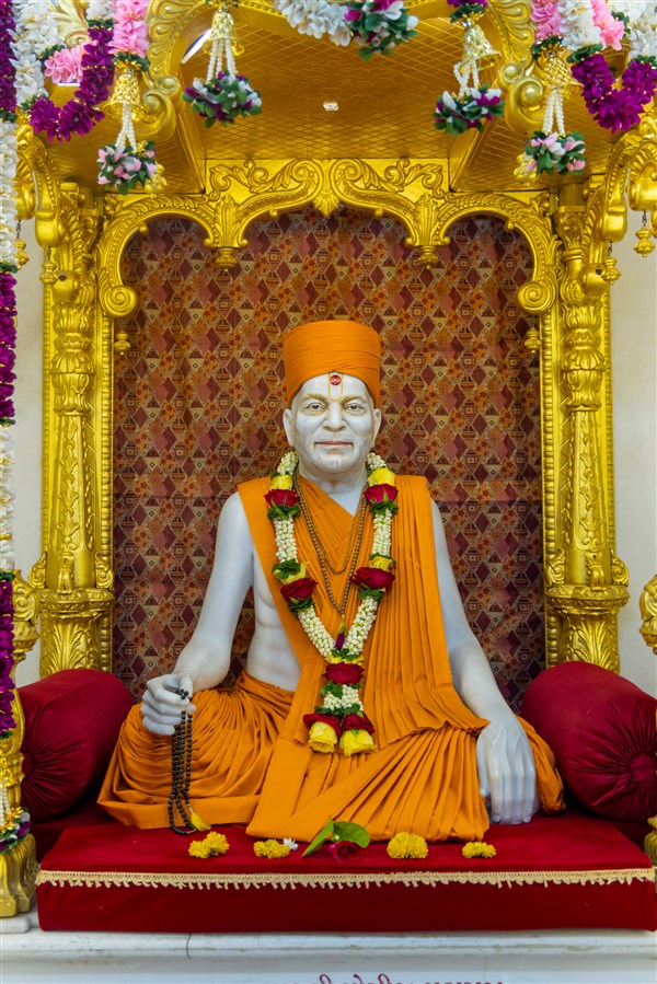 Swamishri after the darshan of Bhagwan Swaminarayan and Aksharbrahma Gunatitanand Swami