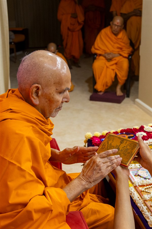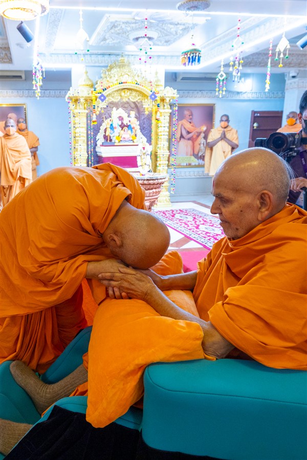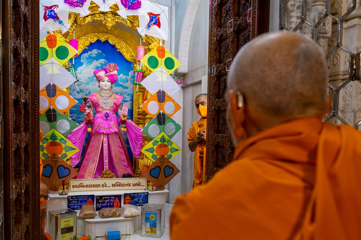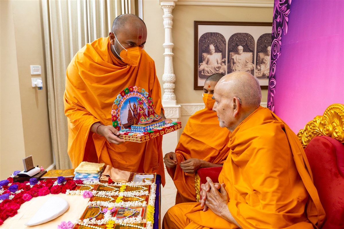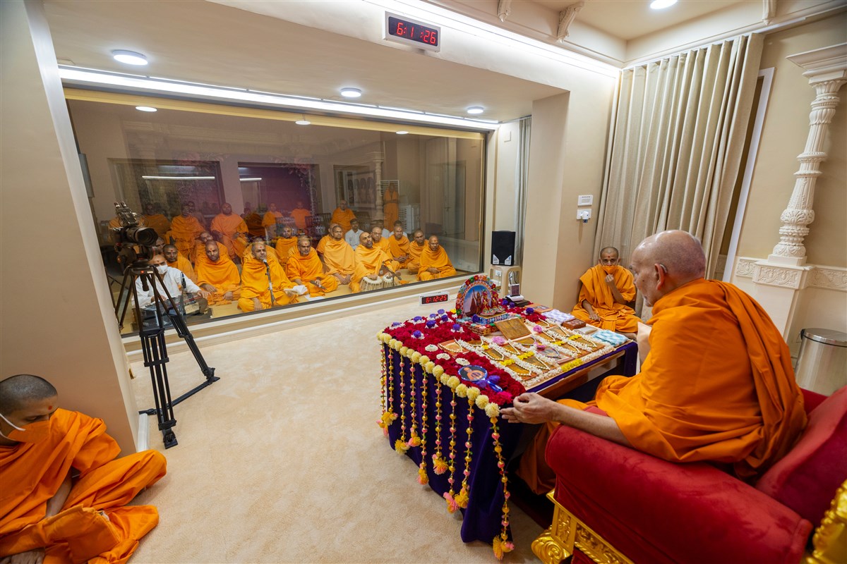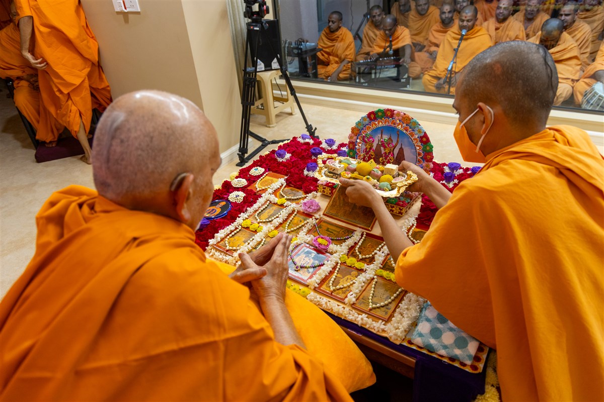 Swamis doing Swamishri's puja darshan