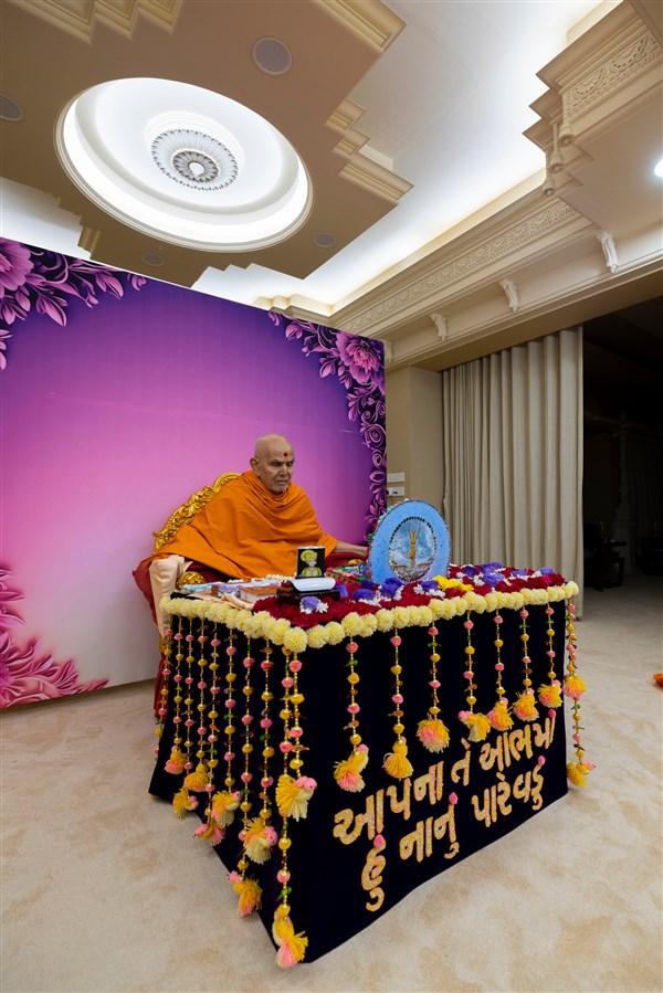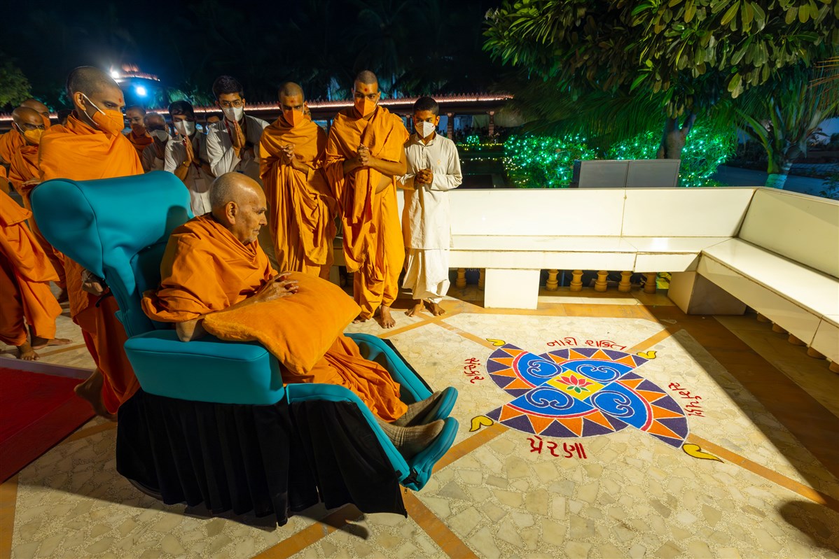 Swamishri returns to 'Sarvasva'