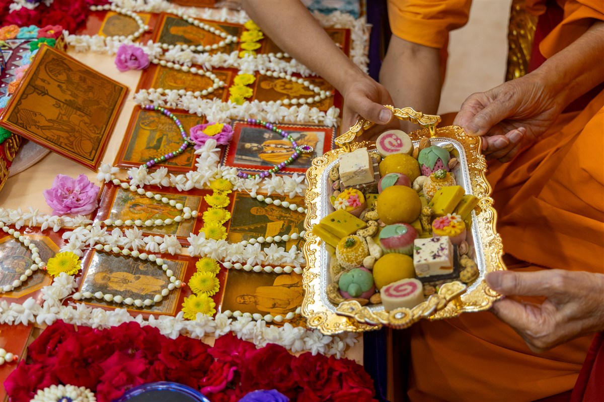 Thal is offered to Shri Harikrishna Maharaj and Shri Gunatitanand Swami Maharaj