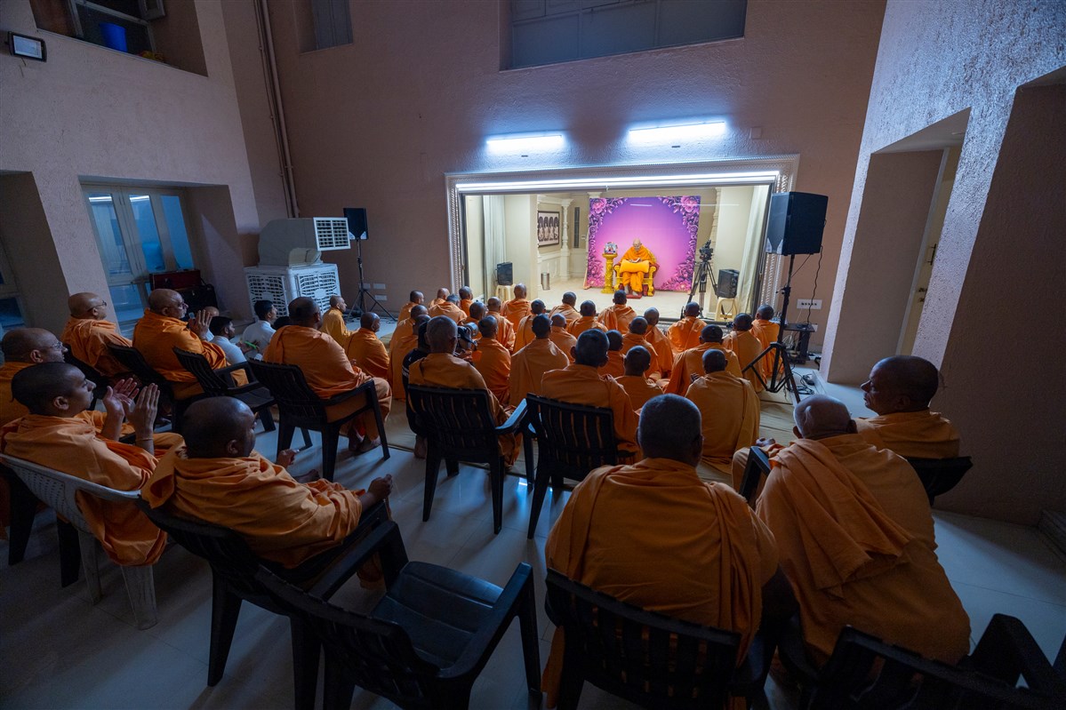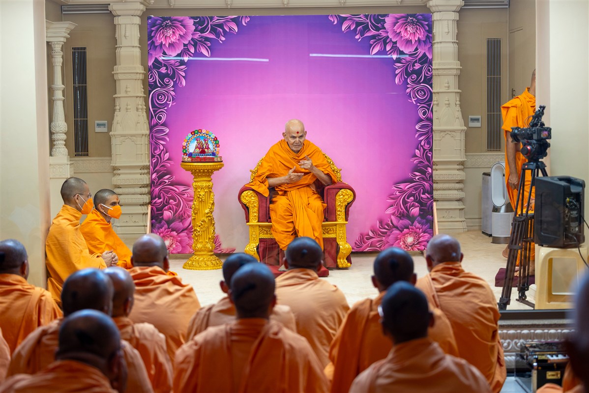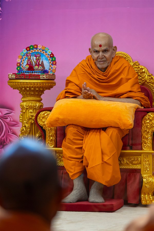 Swamishri blesses the morning assembly