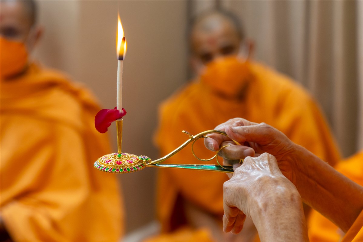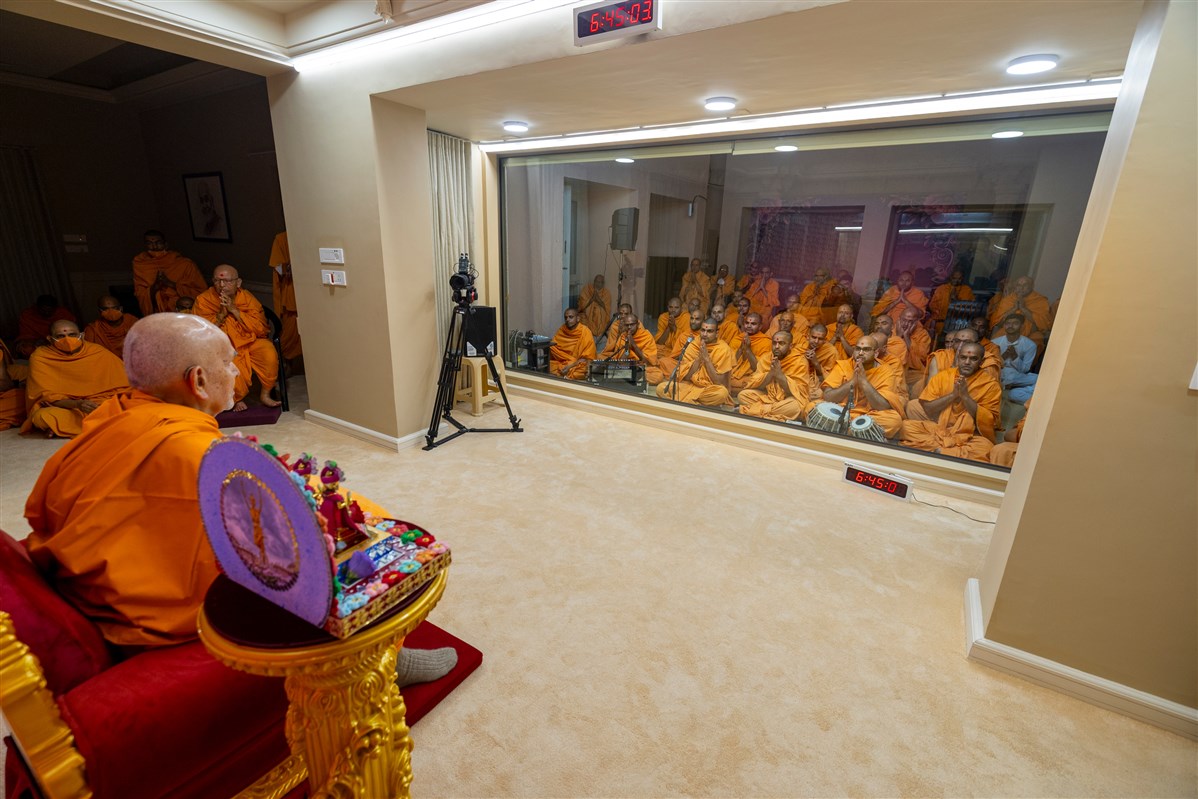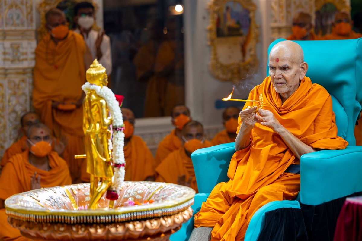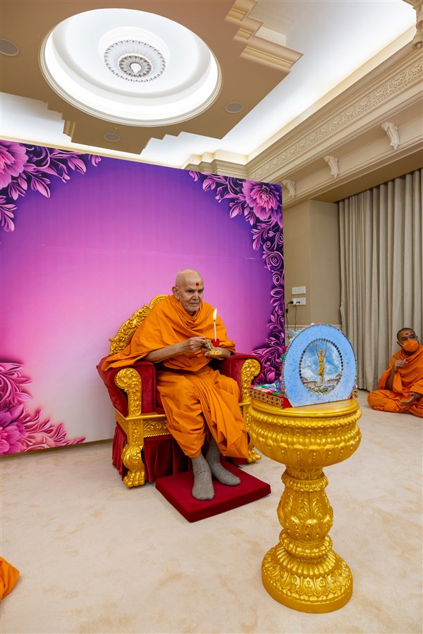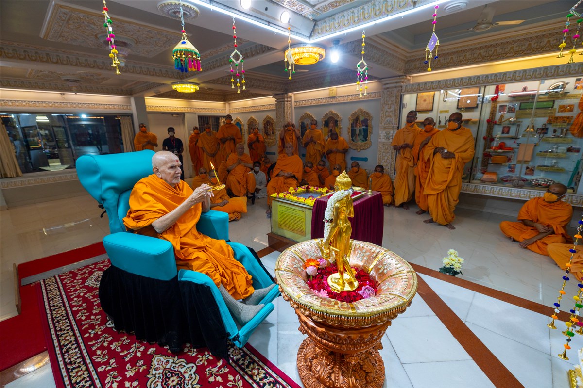 Swamishri performs the morning arti
