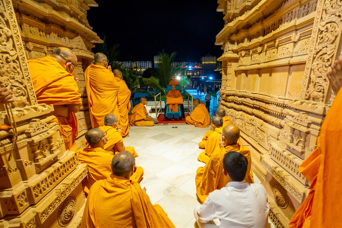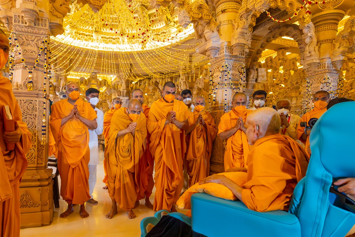 Swamis doing darshan of Swamishri