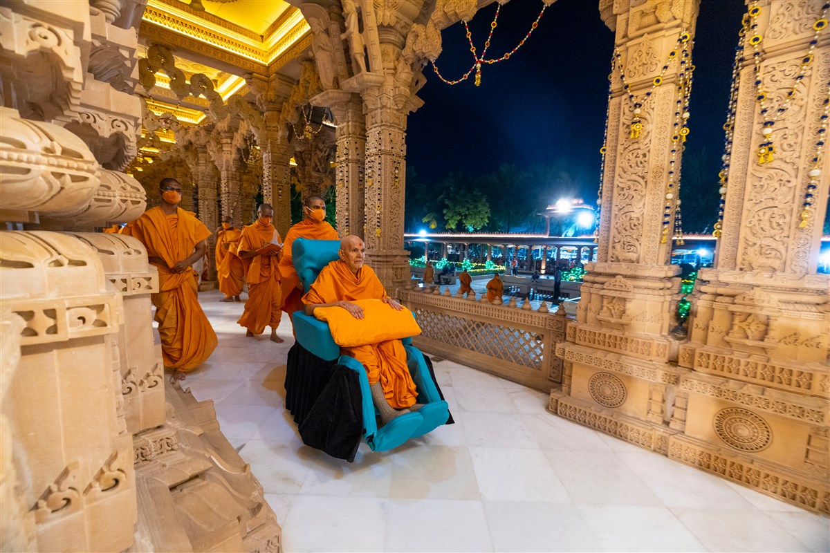 Swamishri in the mandir pradakshina