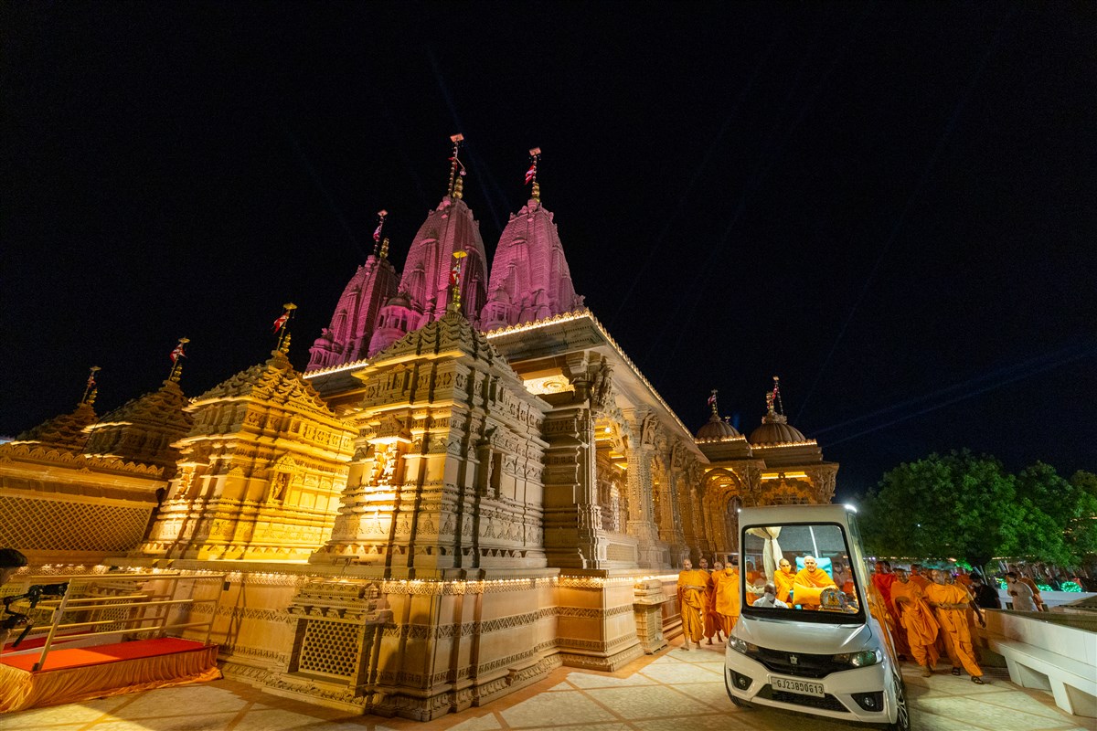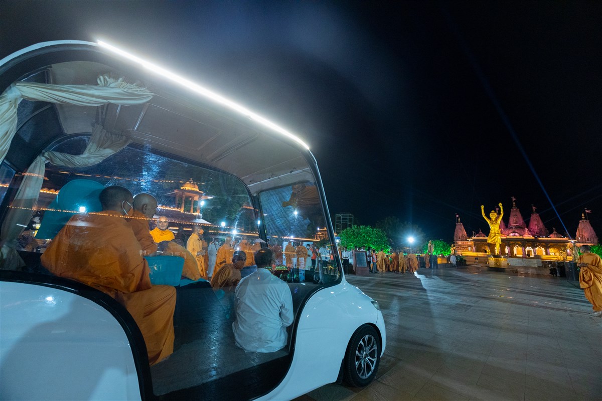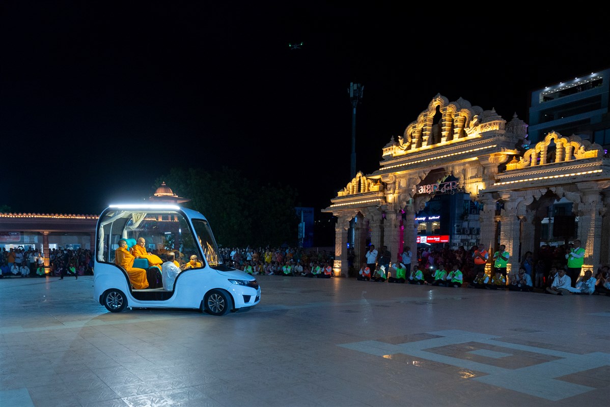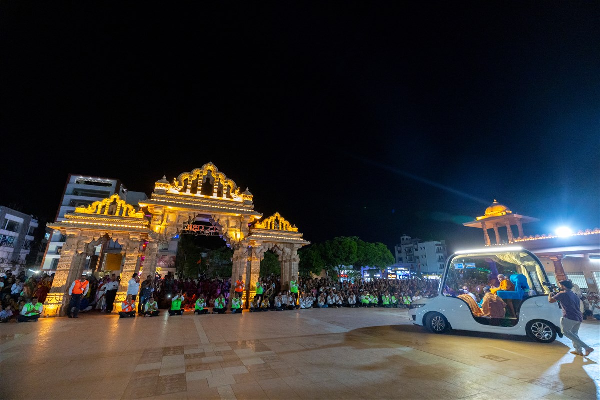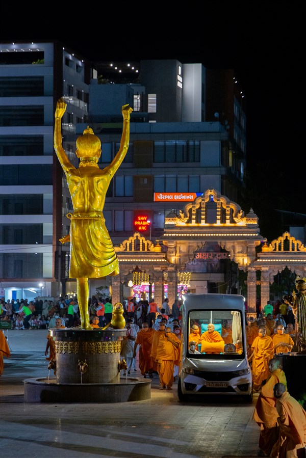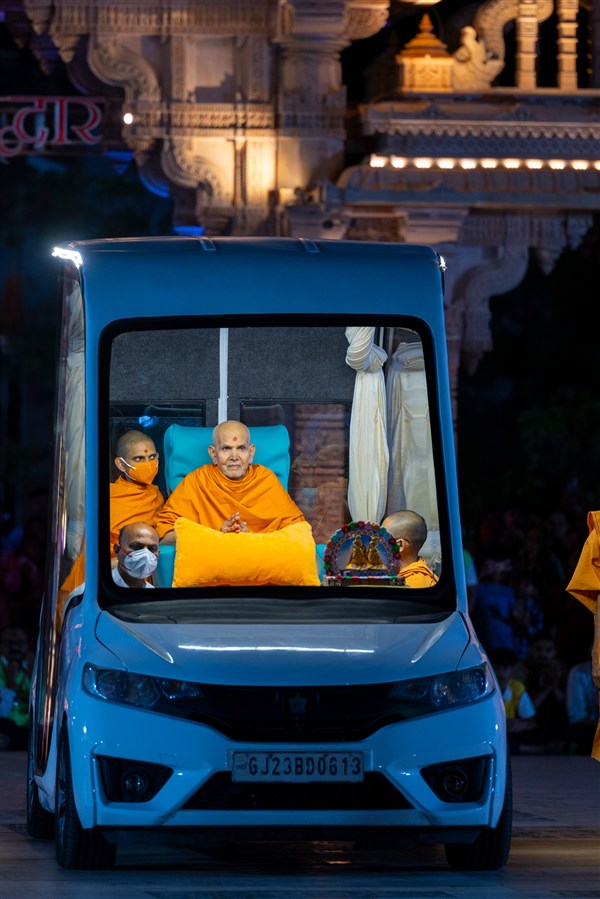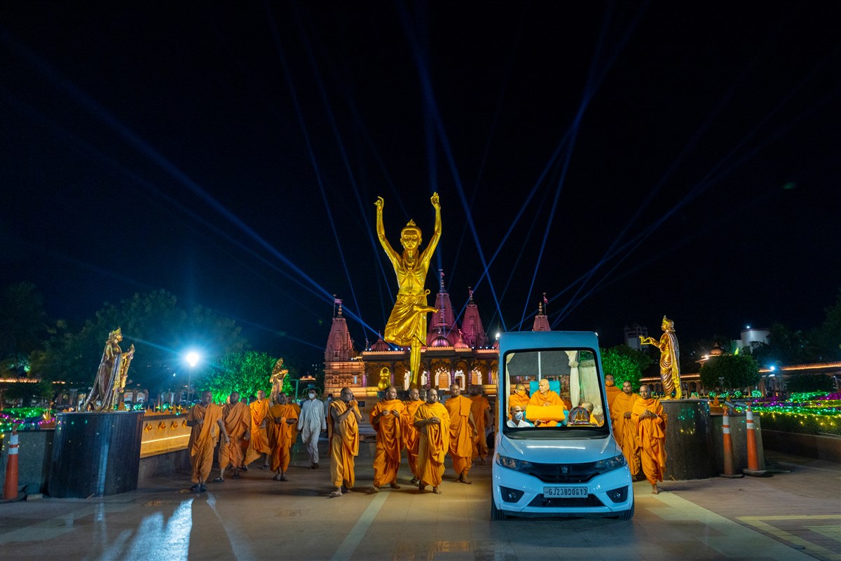 Swamishri on his way to Shri Nilkanth Varni abhishek mandapam