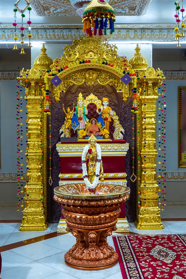 Swamishri offers thal to Shri Guru Parampara