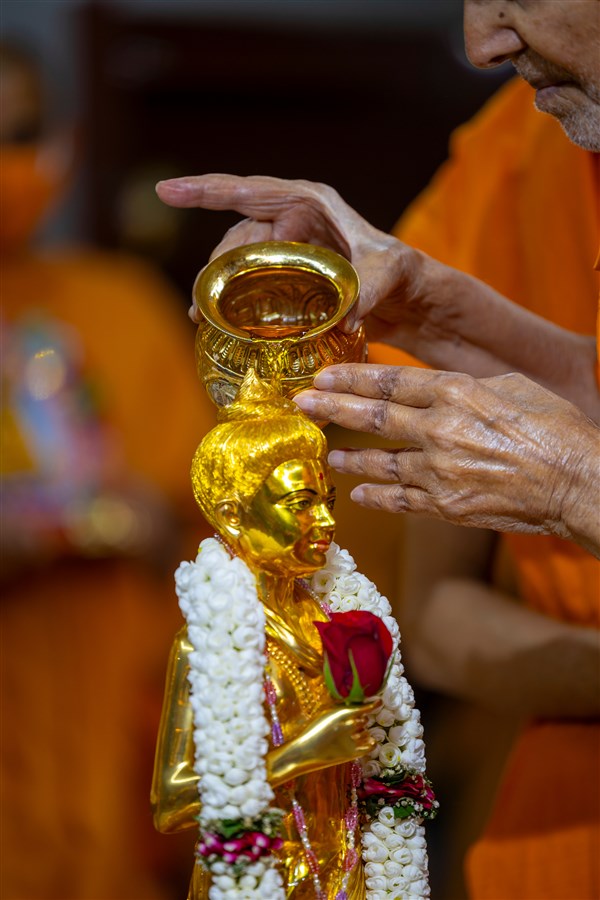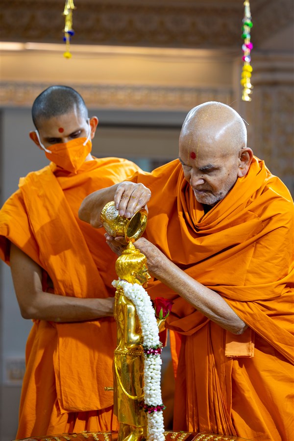 Swamishri performs abhishek of Shri Nilkanth Varni