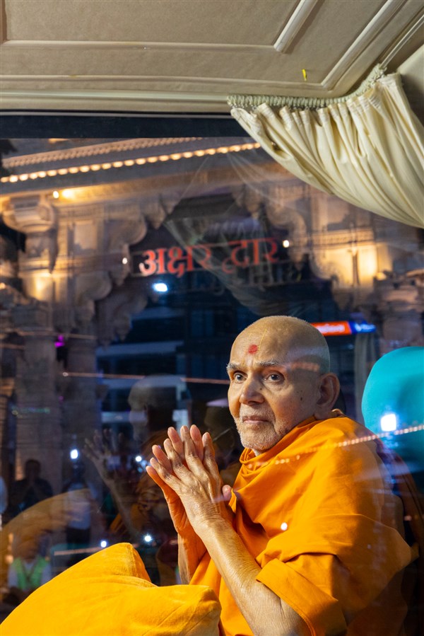 Swamishri greets all with folded hands