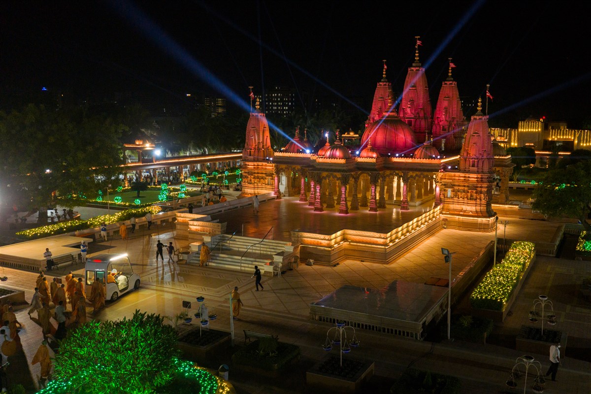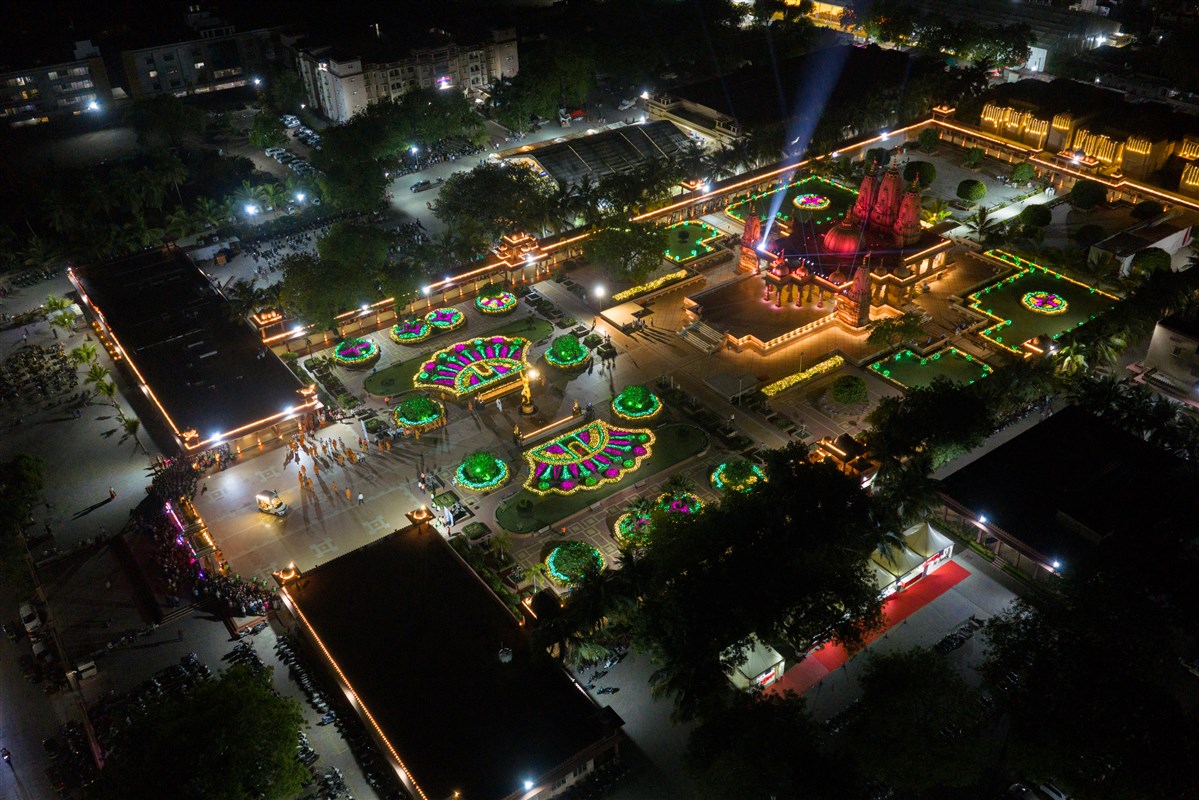 Aerial view of the mandir campus