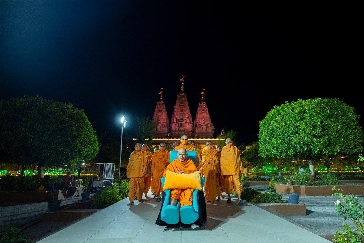 Swamishri in the mandir campus