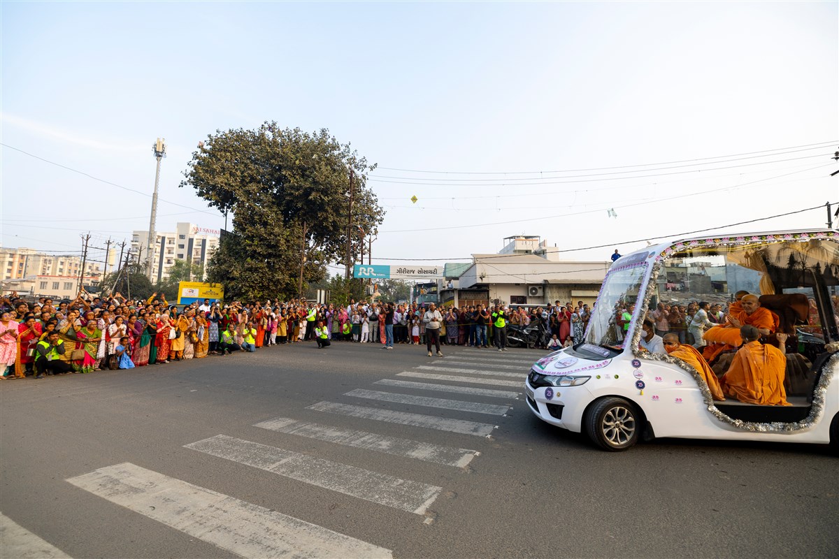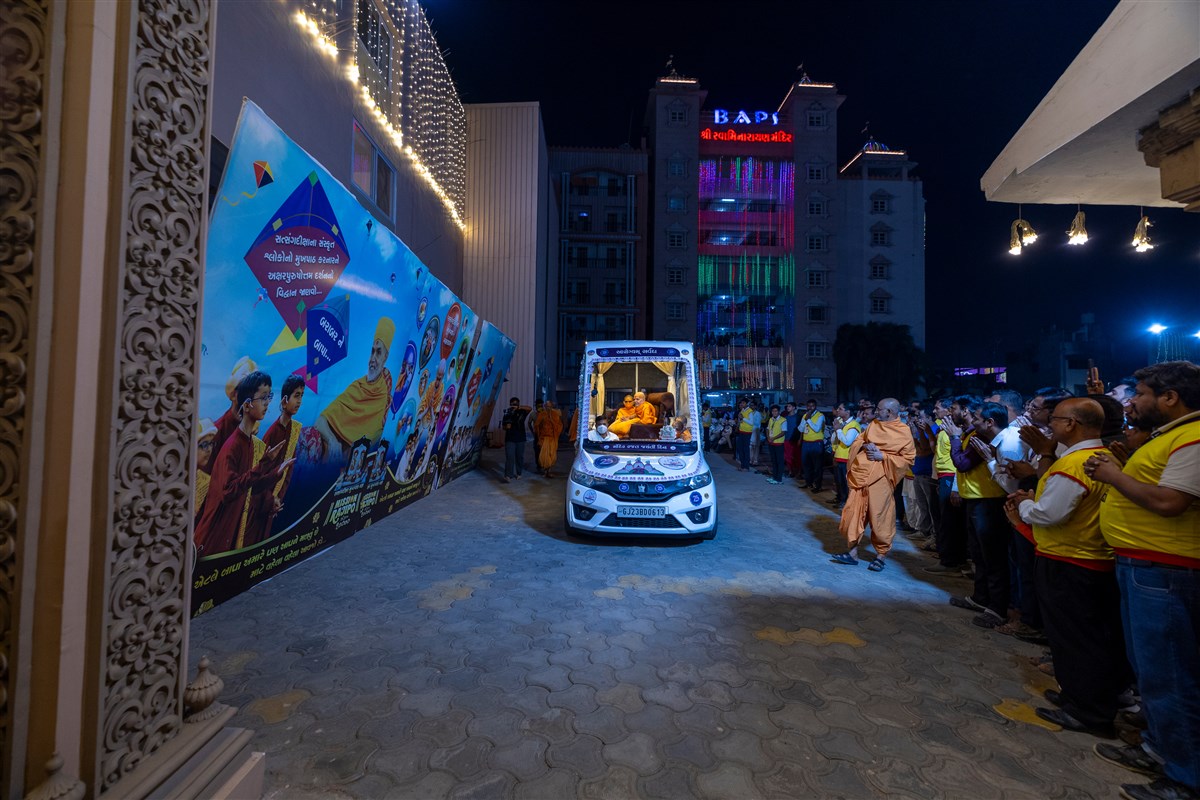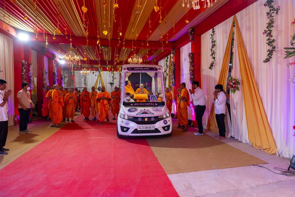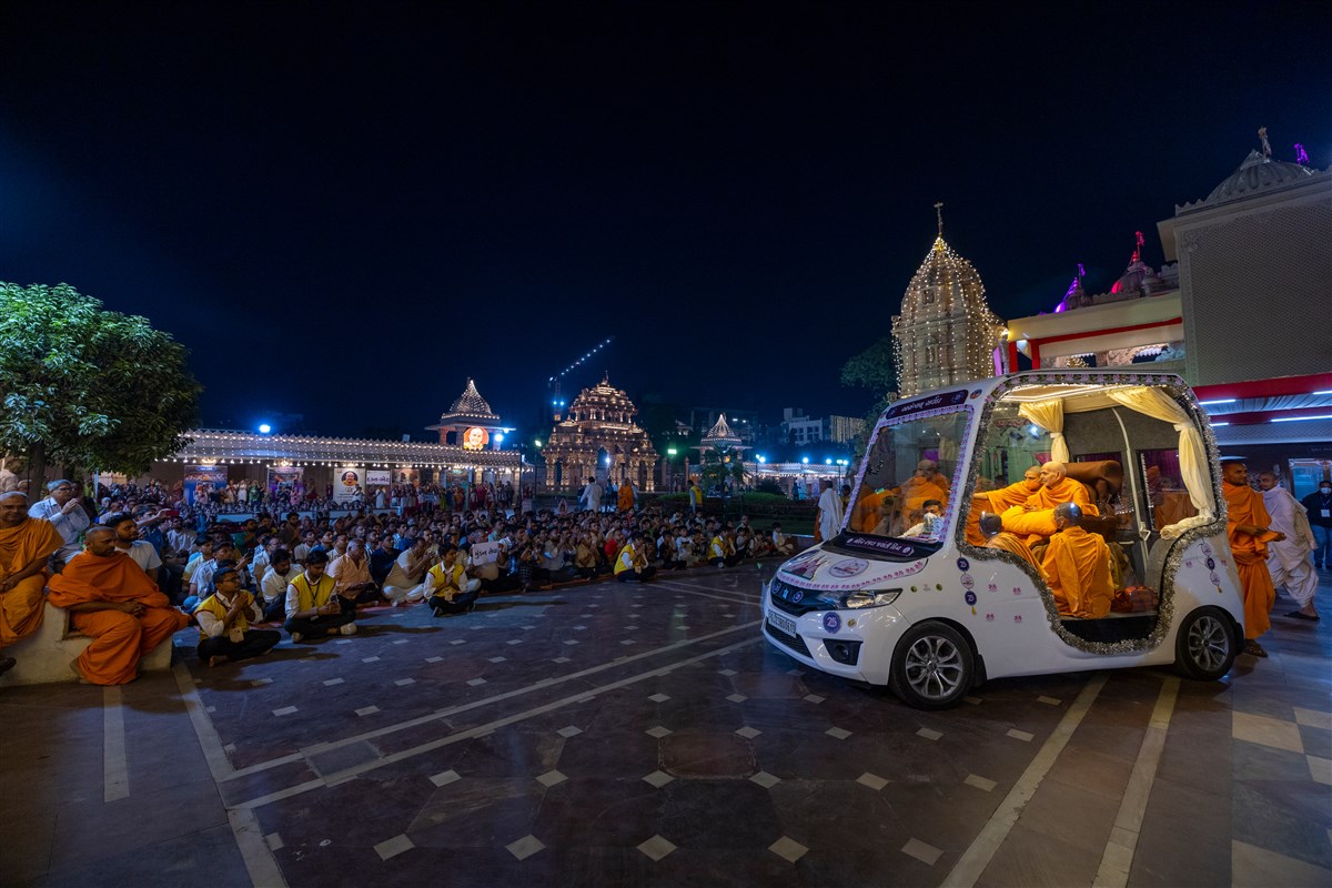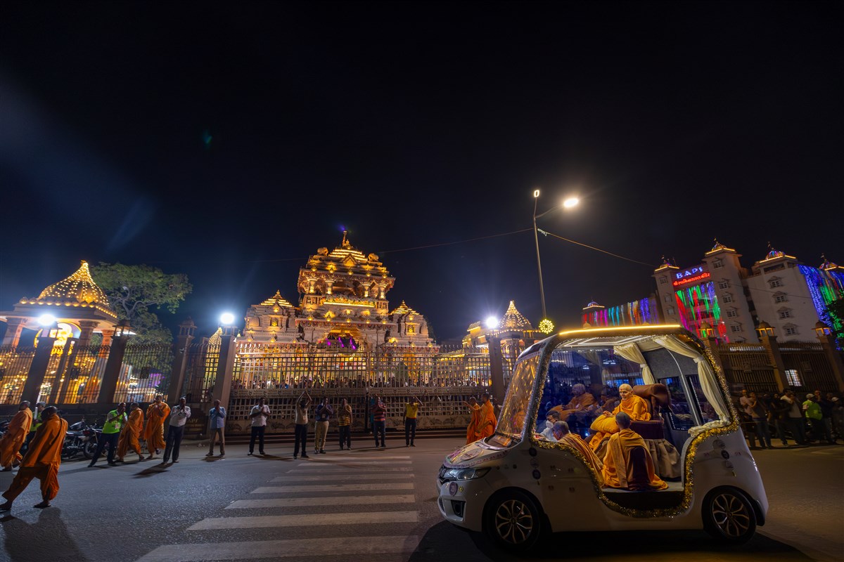 Param Pujya Mahant Swami Maharaj on his way to the assembly hall