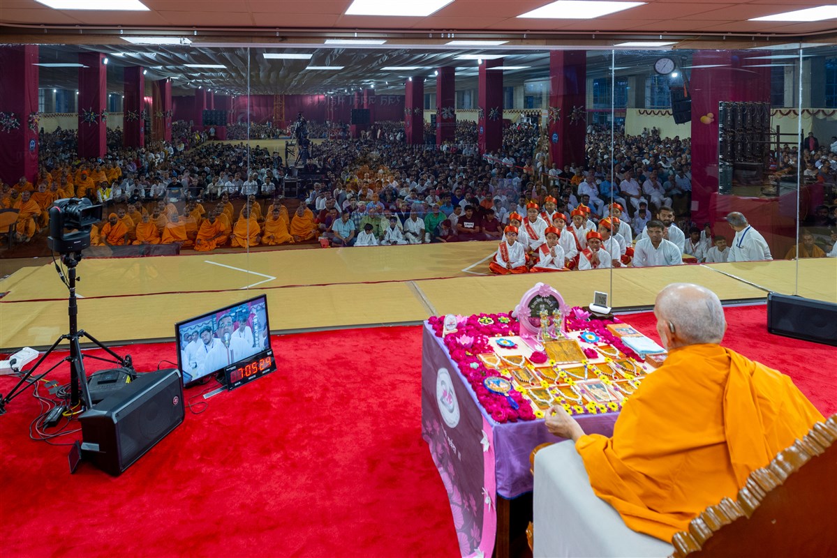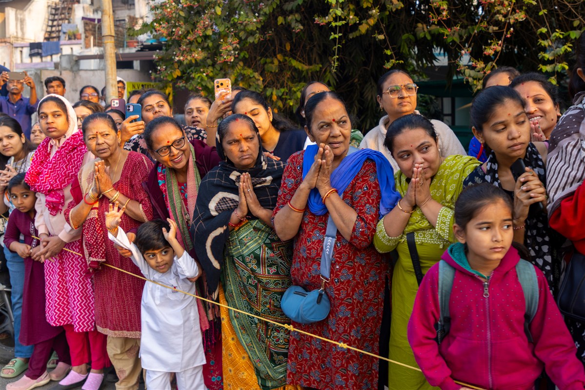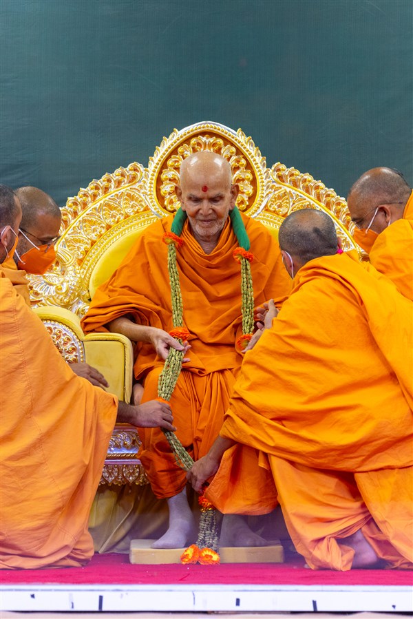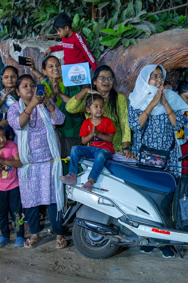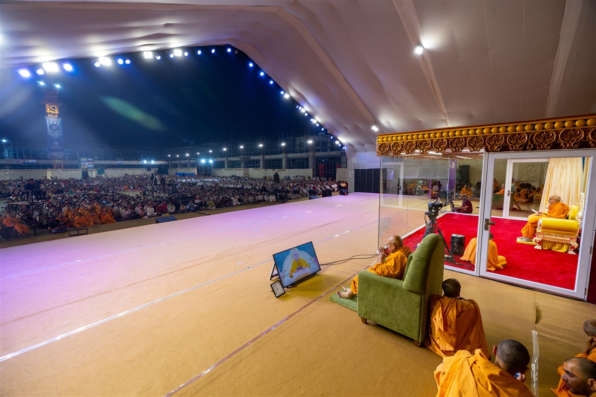 Param Pujya Mahant Swami Maharaj on his way to the assembly hall