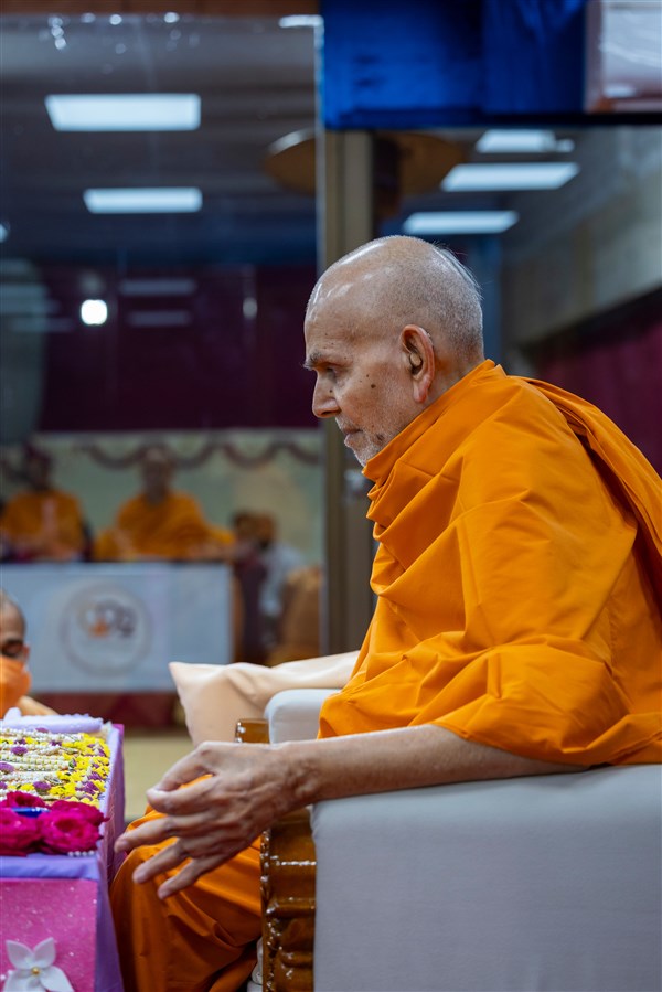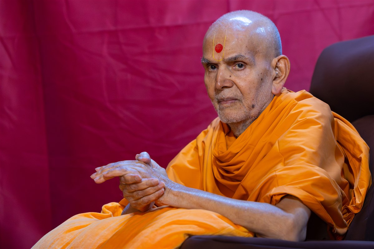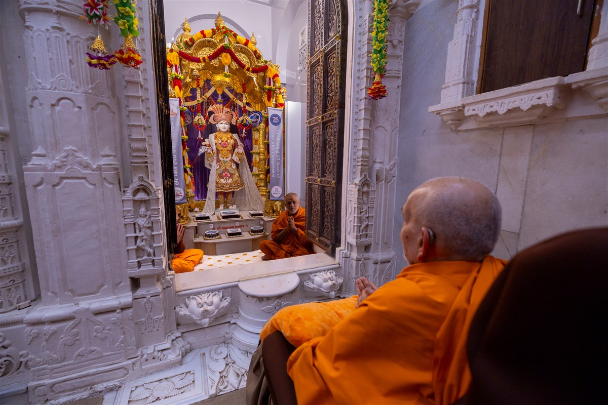 Swamishri engrossed in darshan of Shri Ghanshyam Maharaj