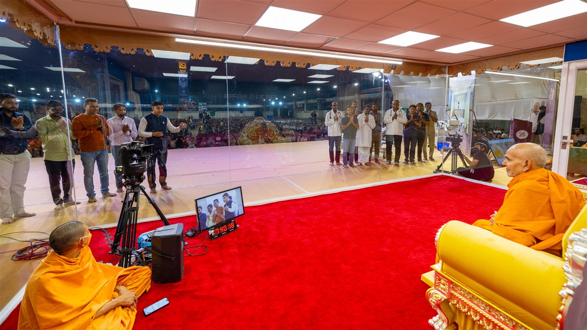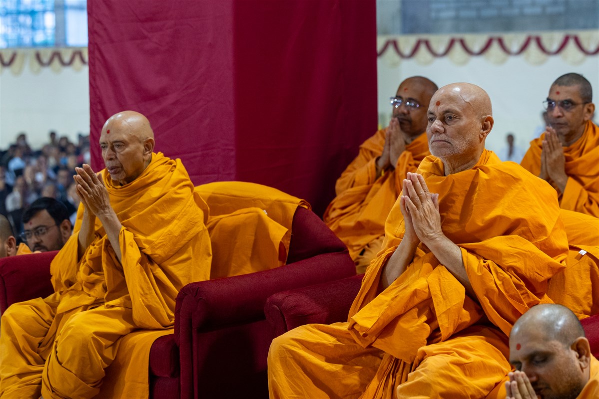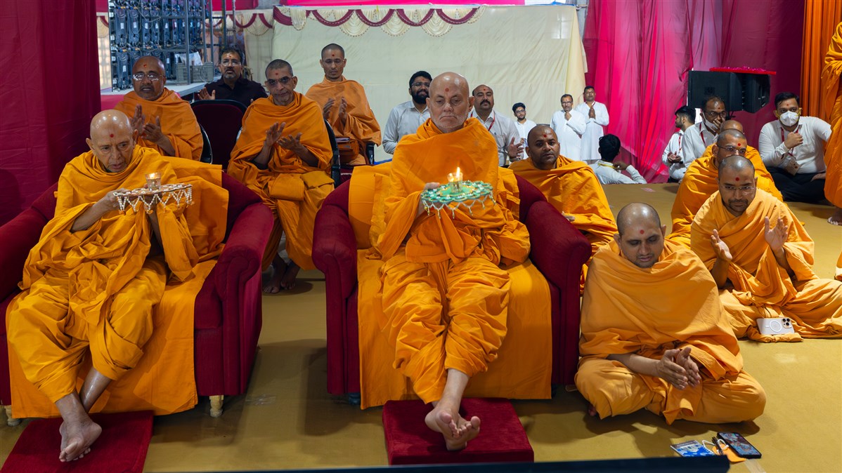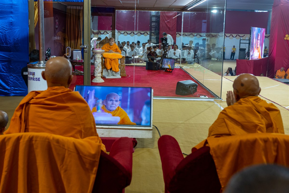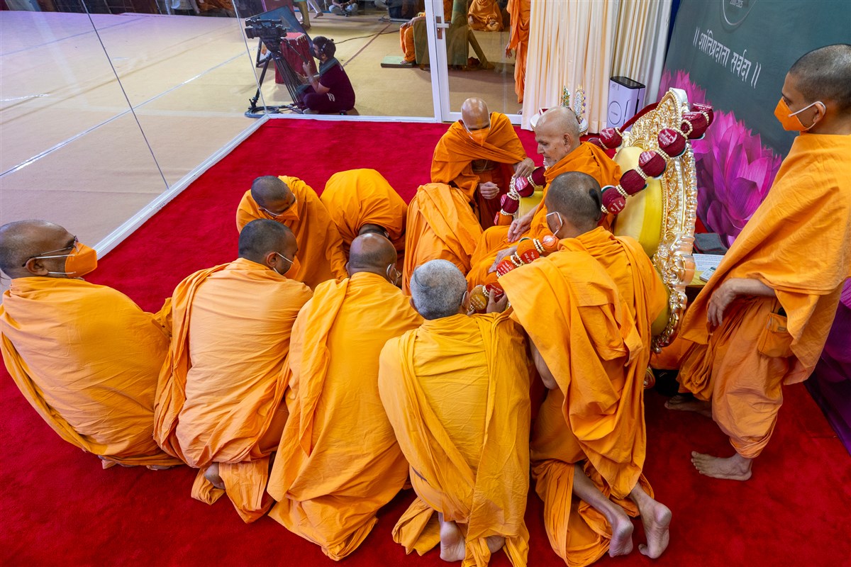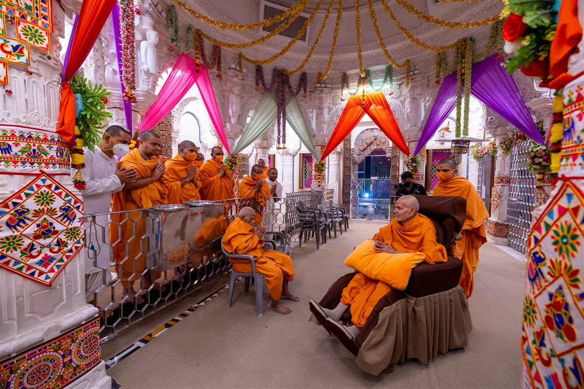 Pujya Tyagvallabh Swami and Pujya Viveksagar Swami doing darshan of Swamishri