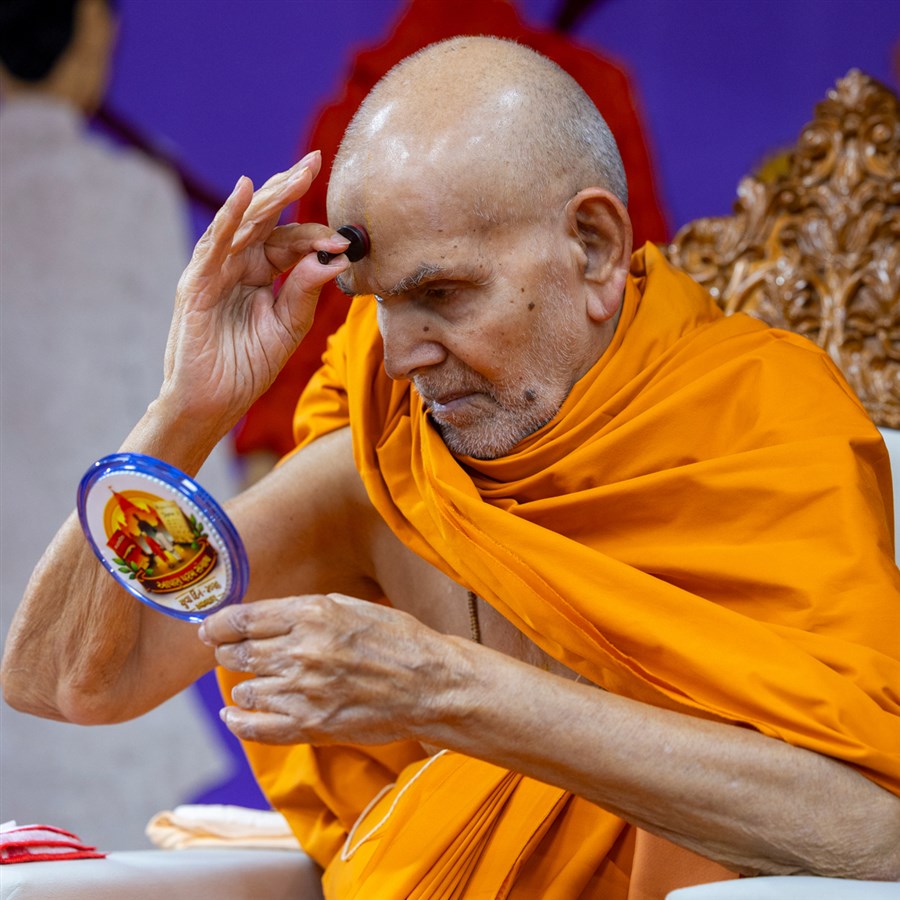 Swamishri applies a chandlo