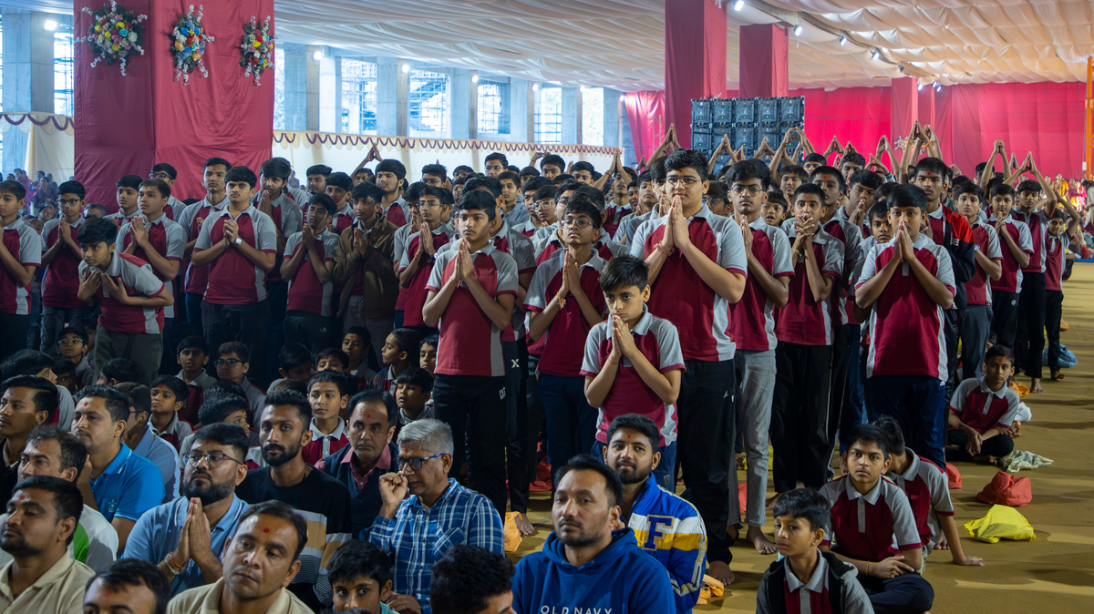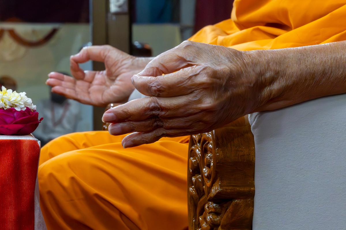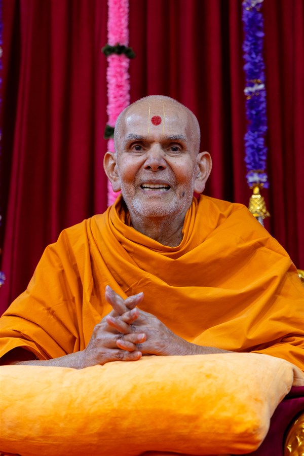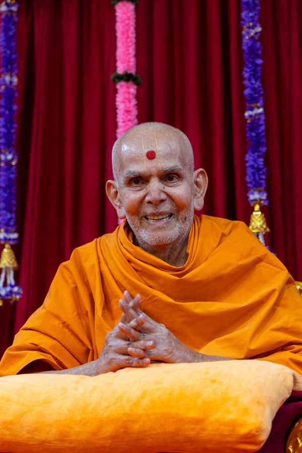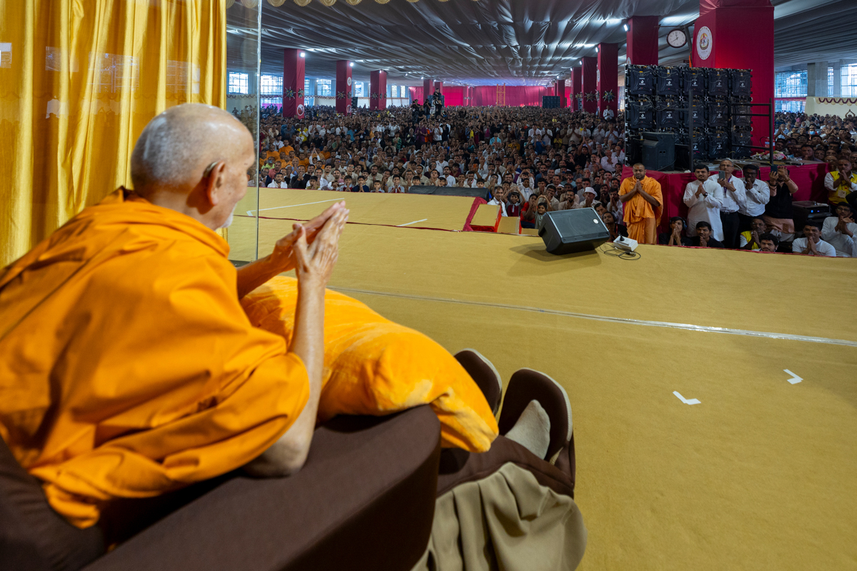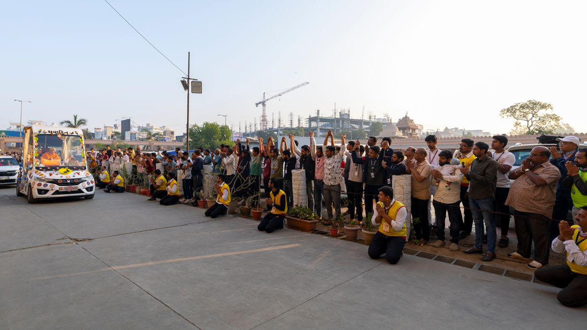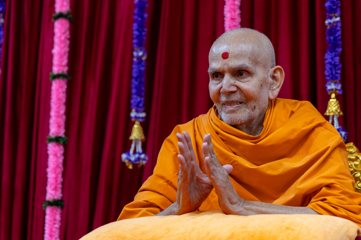 Swamishri greets all with folded hands