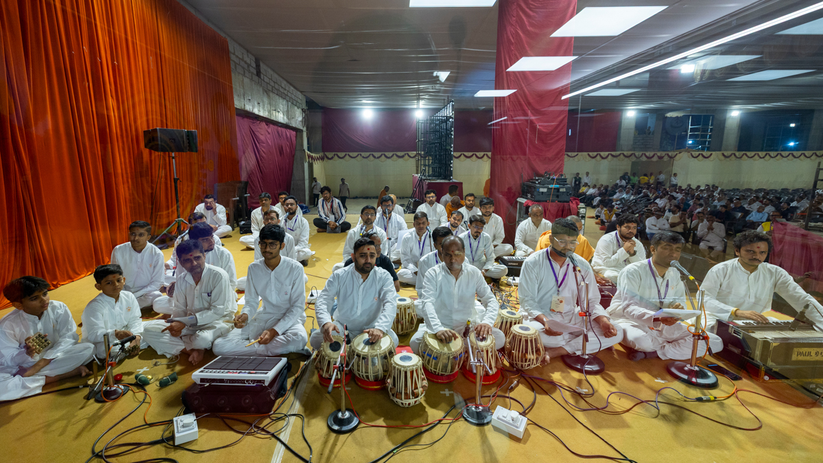 Yuvaks sing kirtans in Swamishri's daily puja