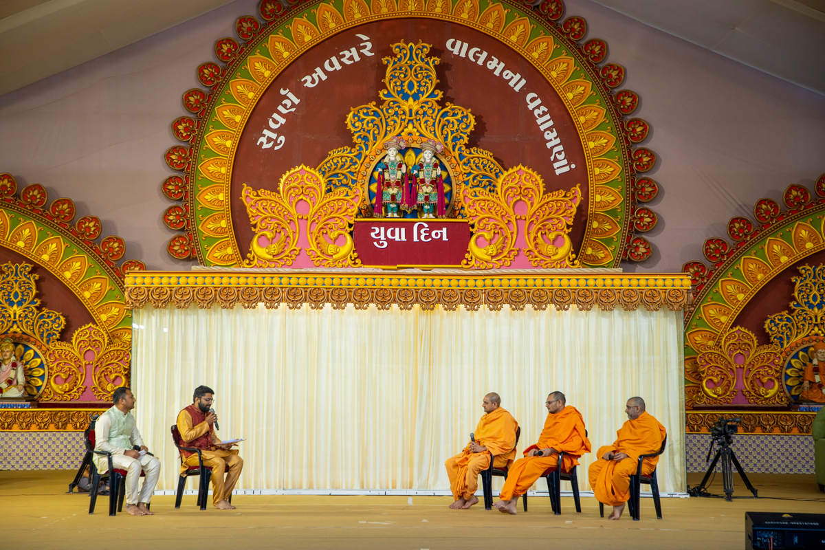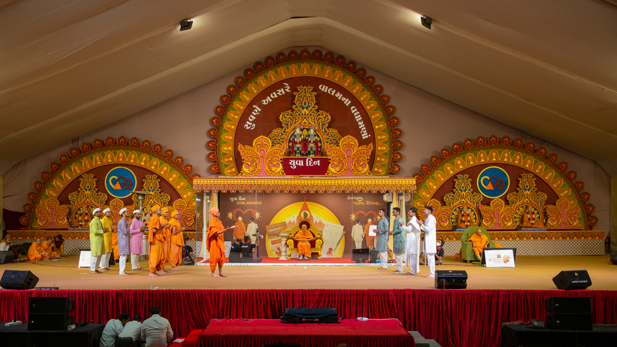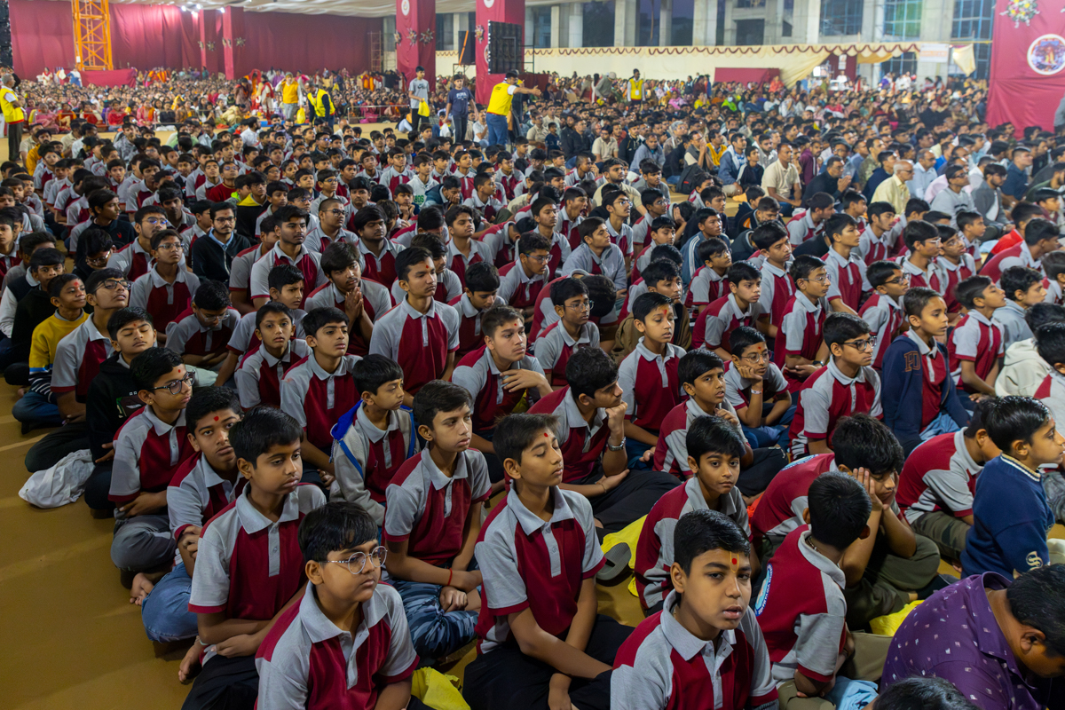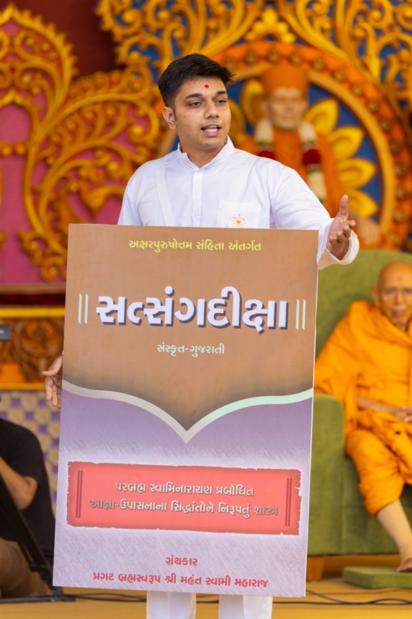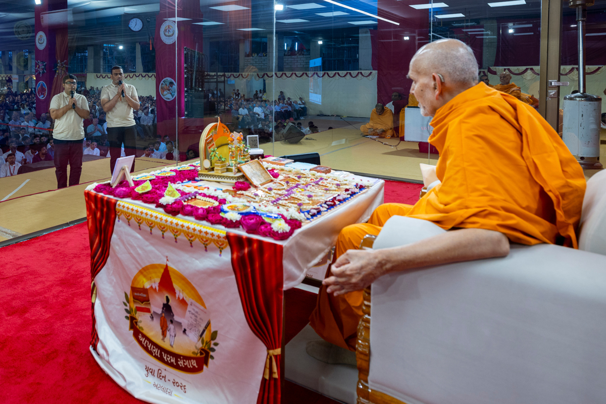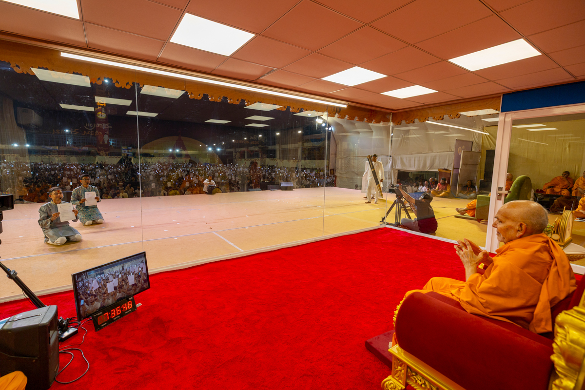 Swamishri listens to recitations by yuvaks