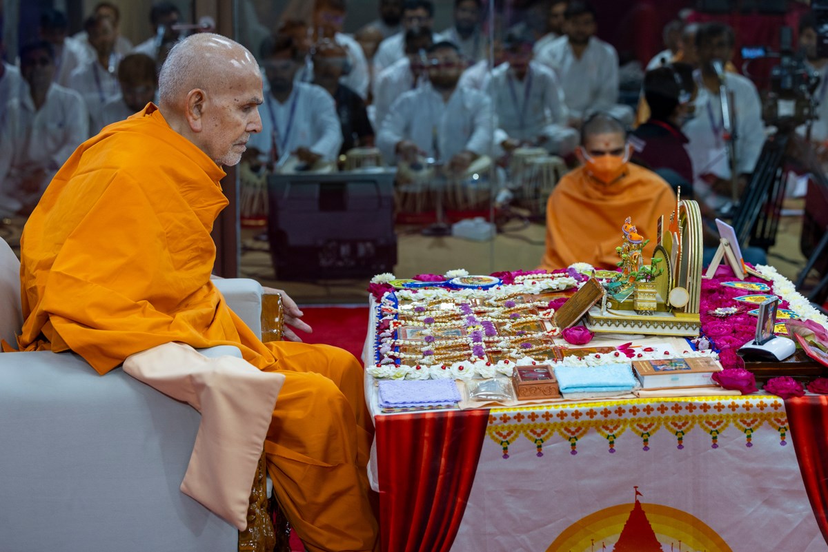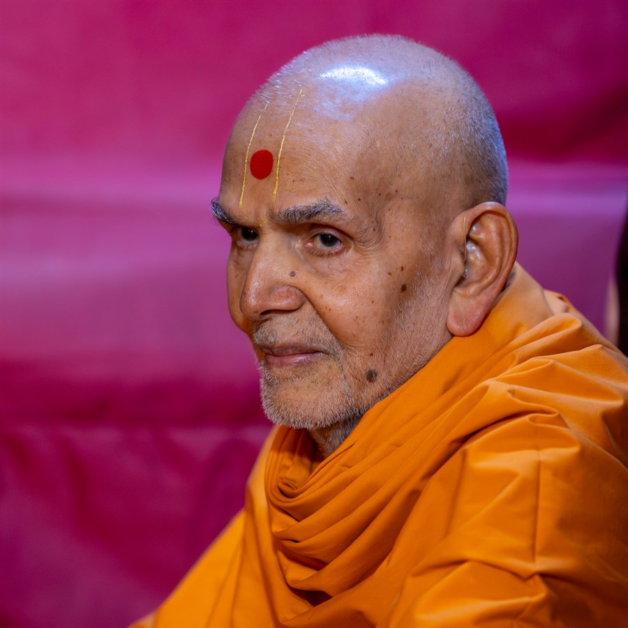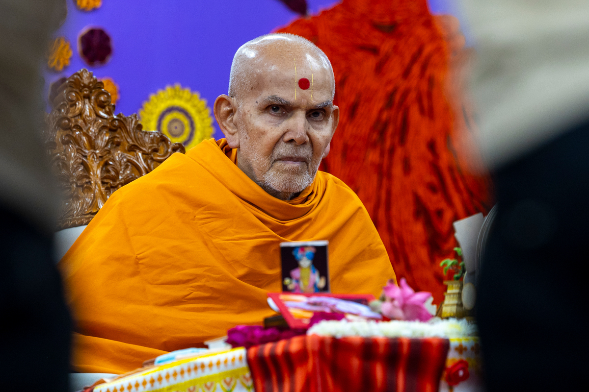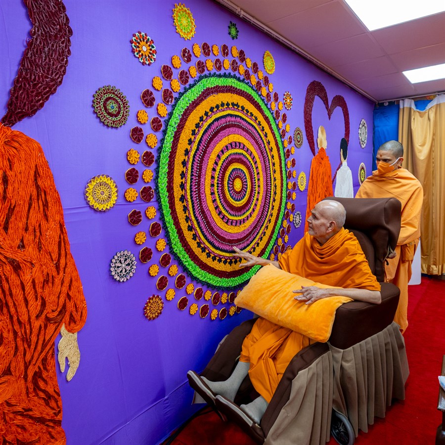 Swamishri observes the background decoration