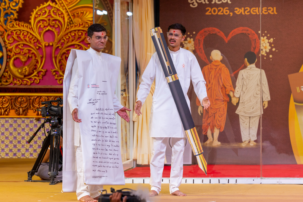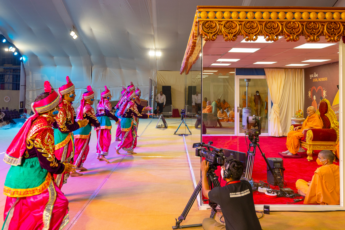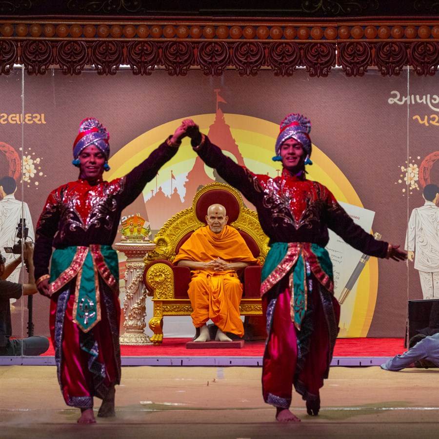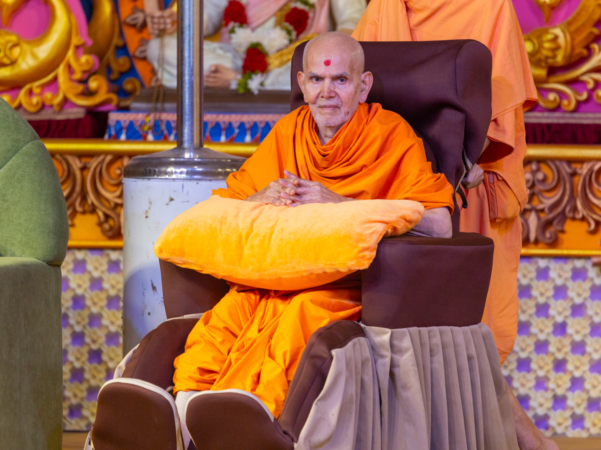 Swamishri observes the background decoration