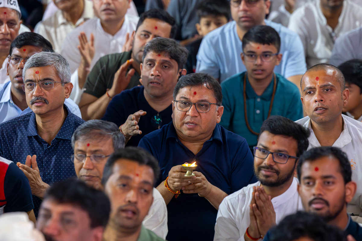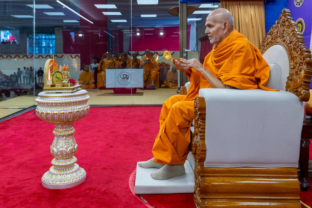 Swamishri performs the morning arti