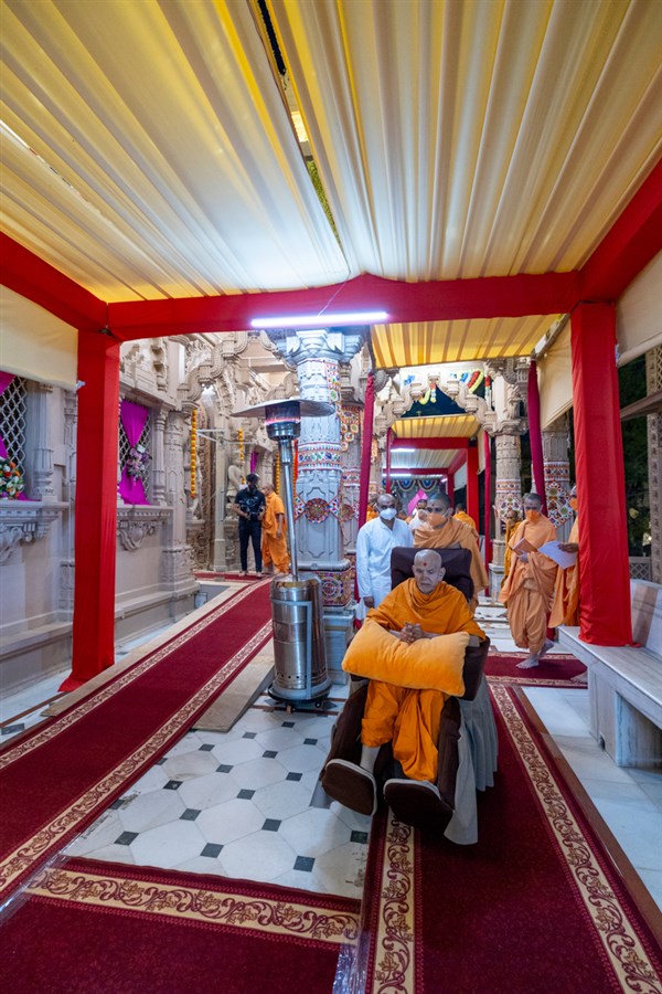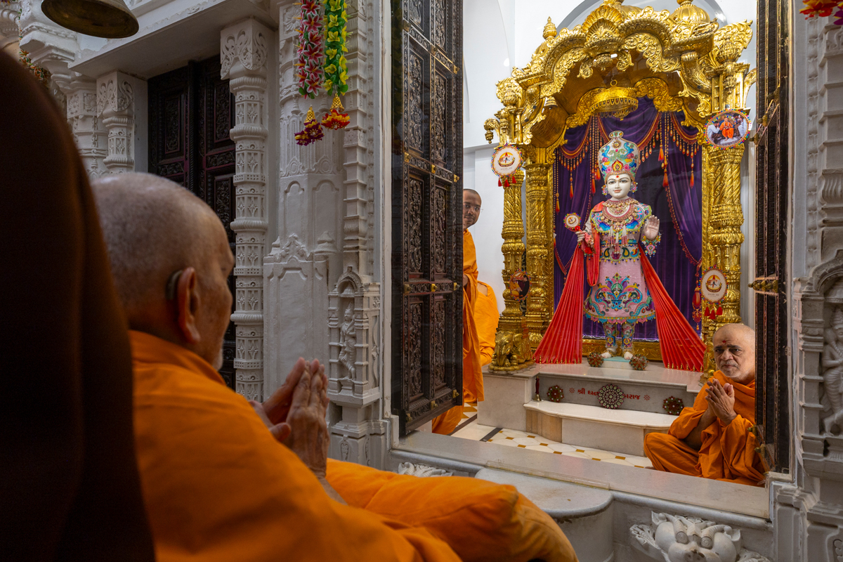 Swamishri arrives for Thakorji's darshan