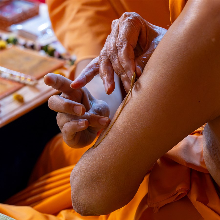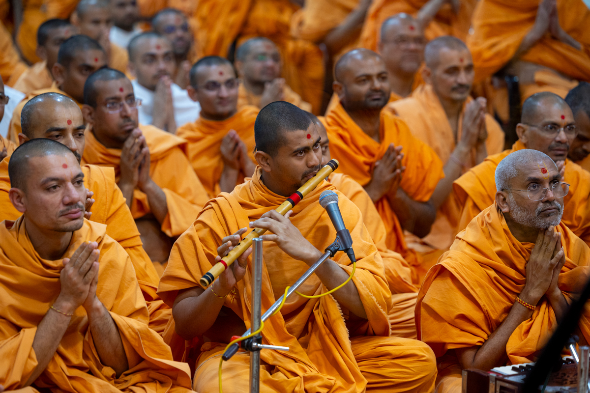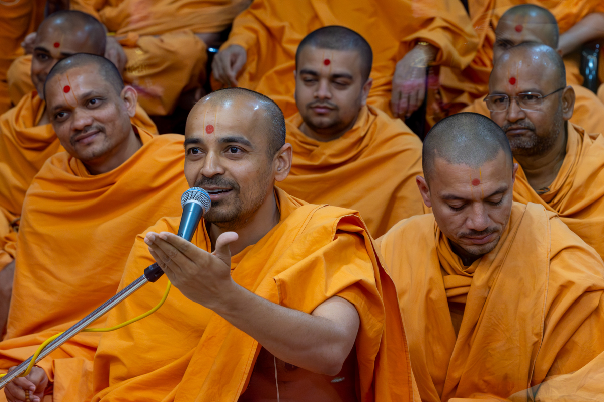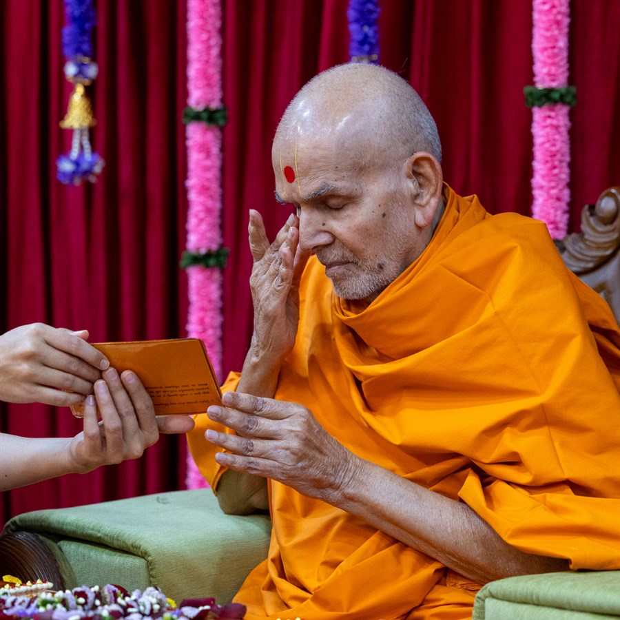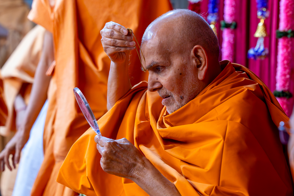 Param Pujya Mahant Swami Maharaj applies a tilak on his forehead