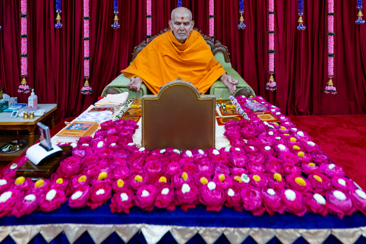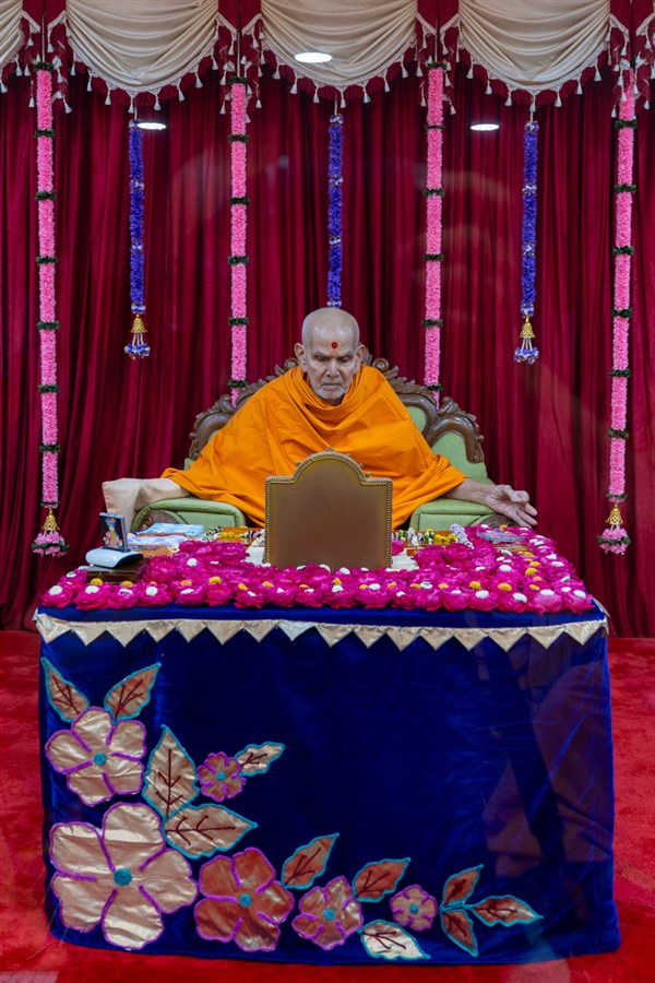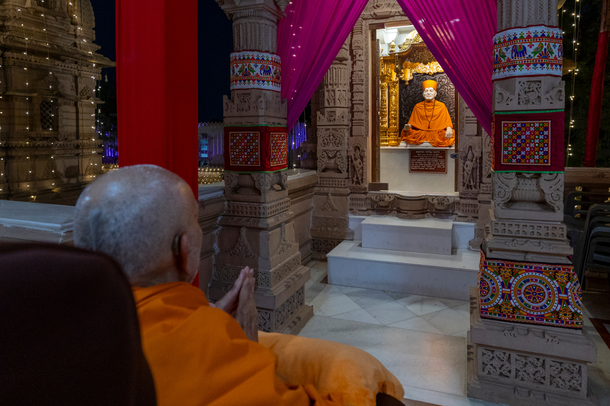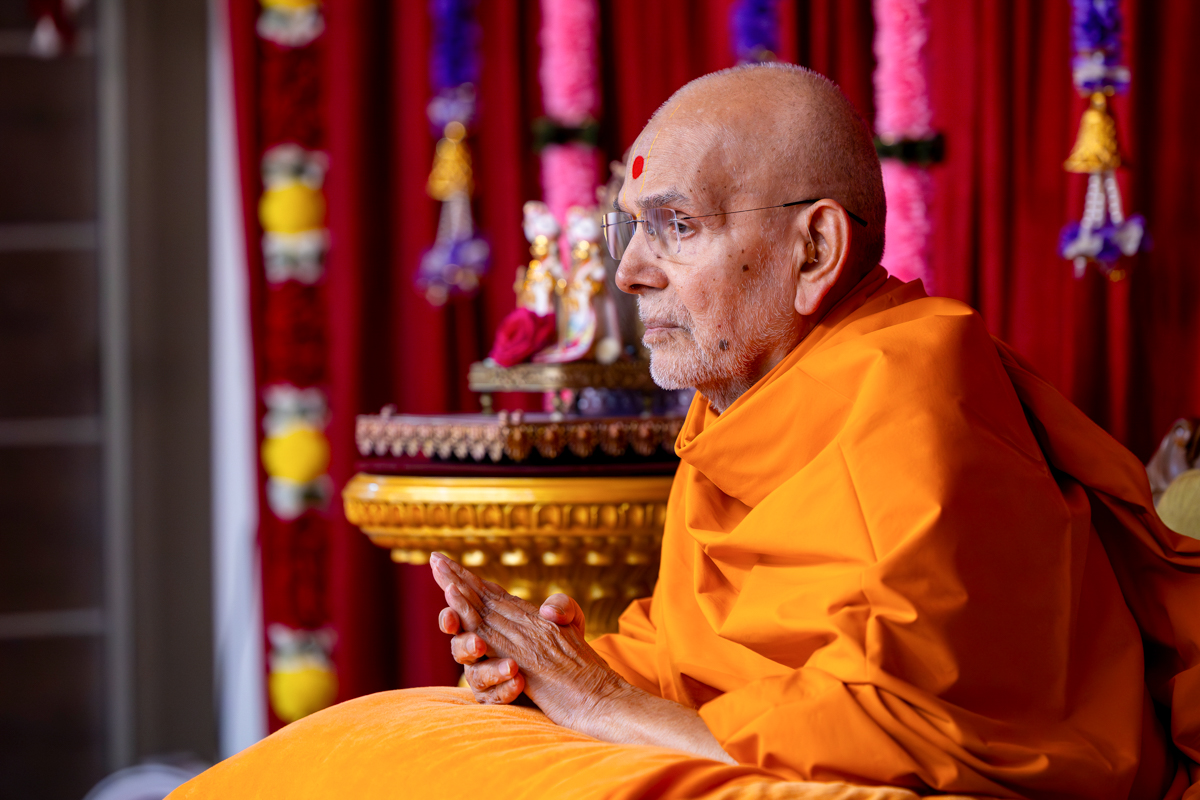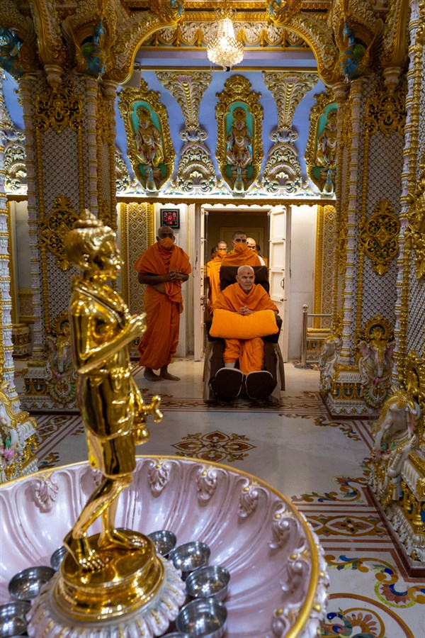 Swamishri after the darshan of Shri Ghanshyam Maharaj