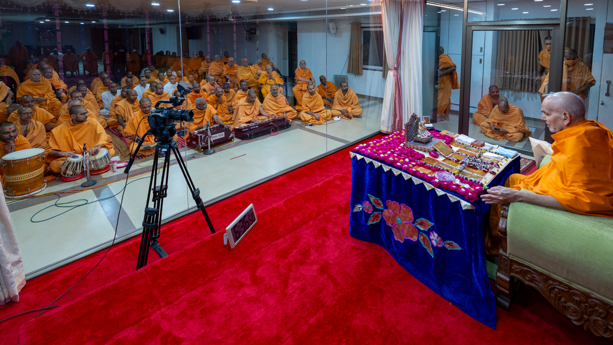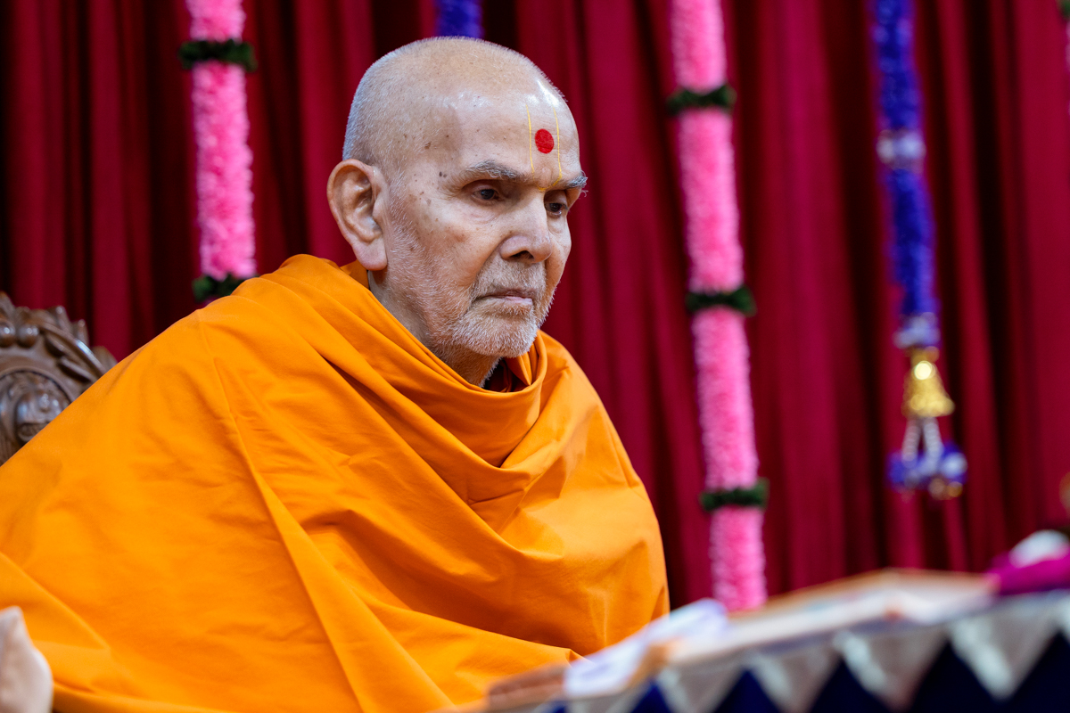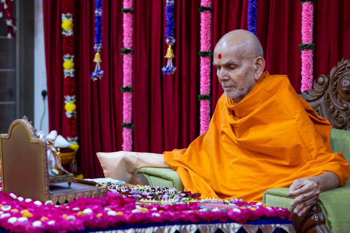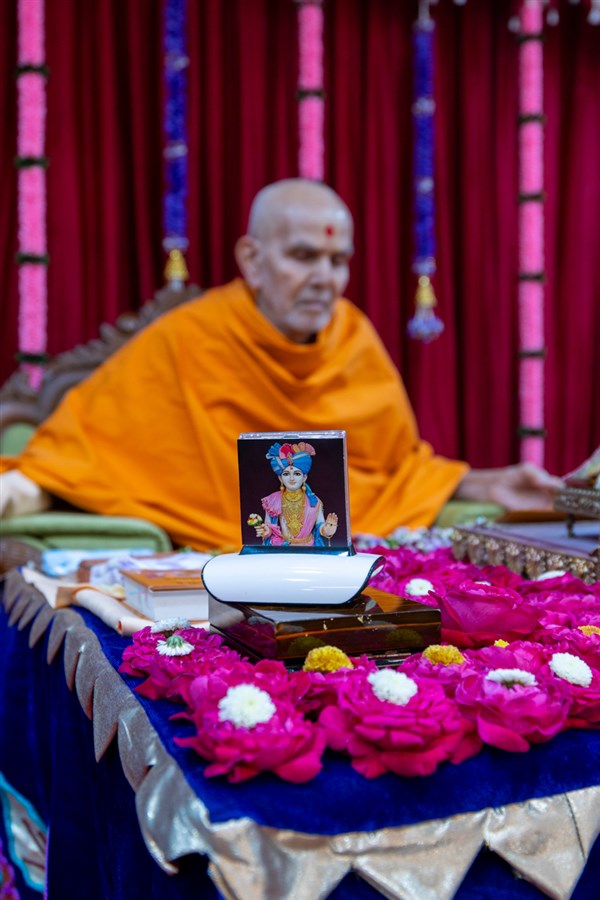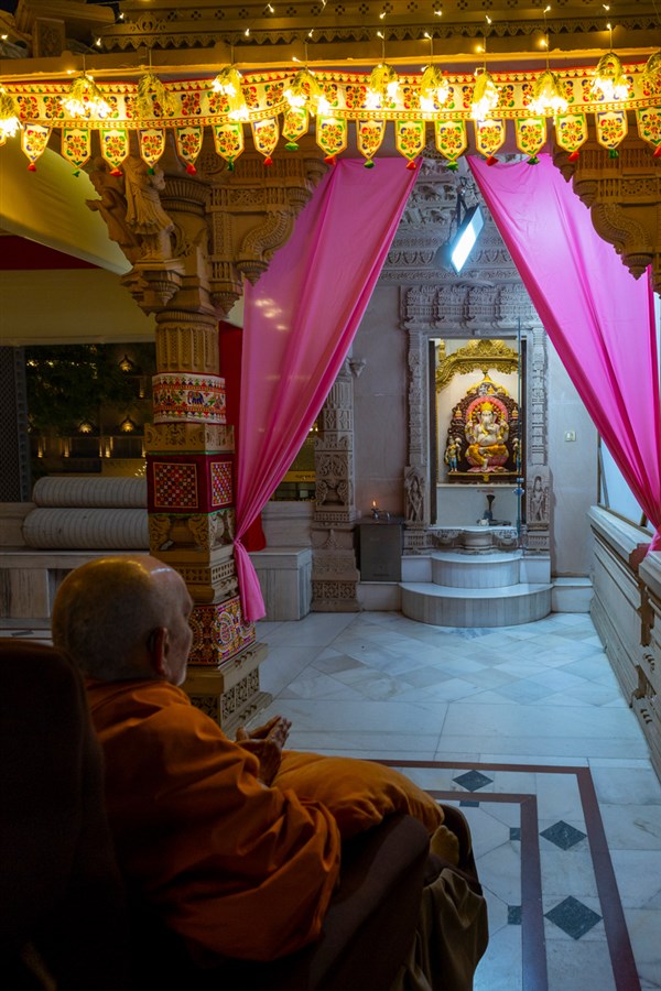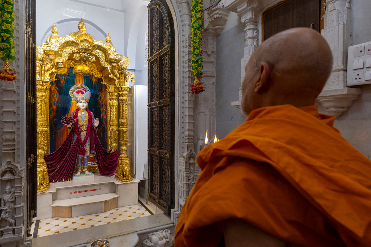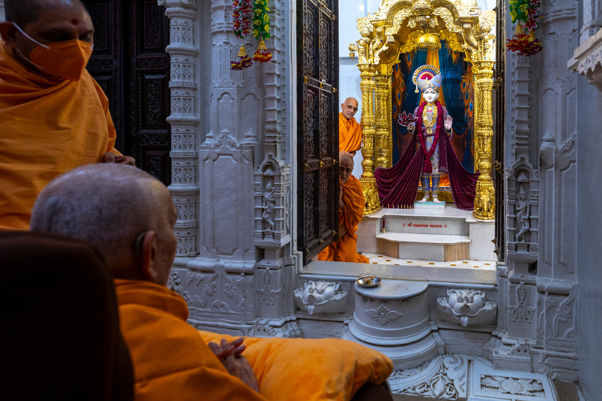 Swamishri engrossed in darshan of Shri Ghanshyam Maharaj