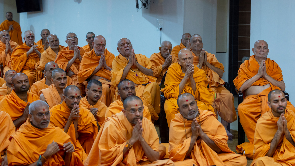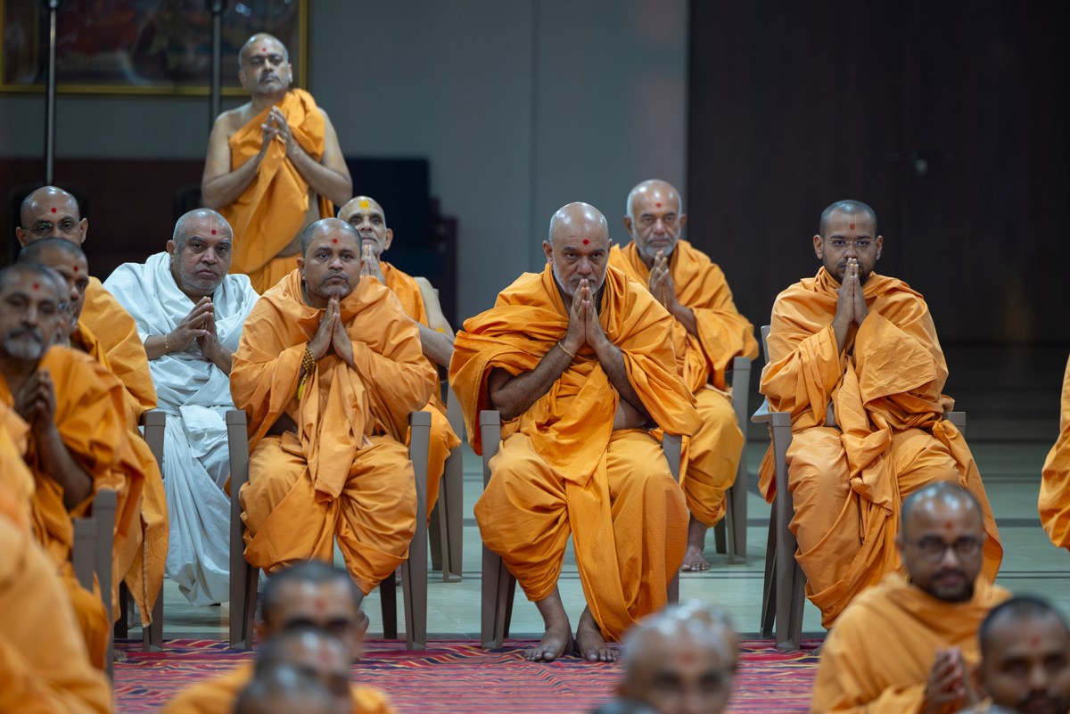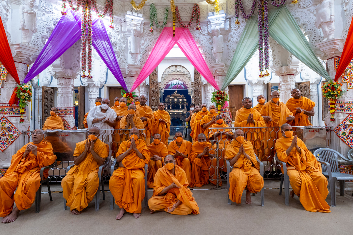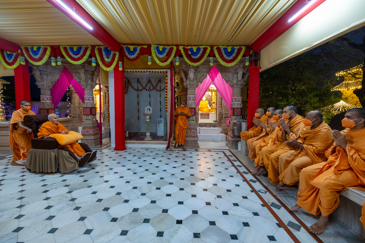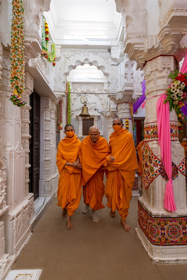 Pujya Tyagvallabh Swami, Pujya Viveksagar Swami and swamis doing darshan of Swamishri