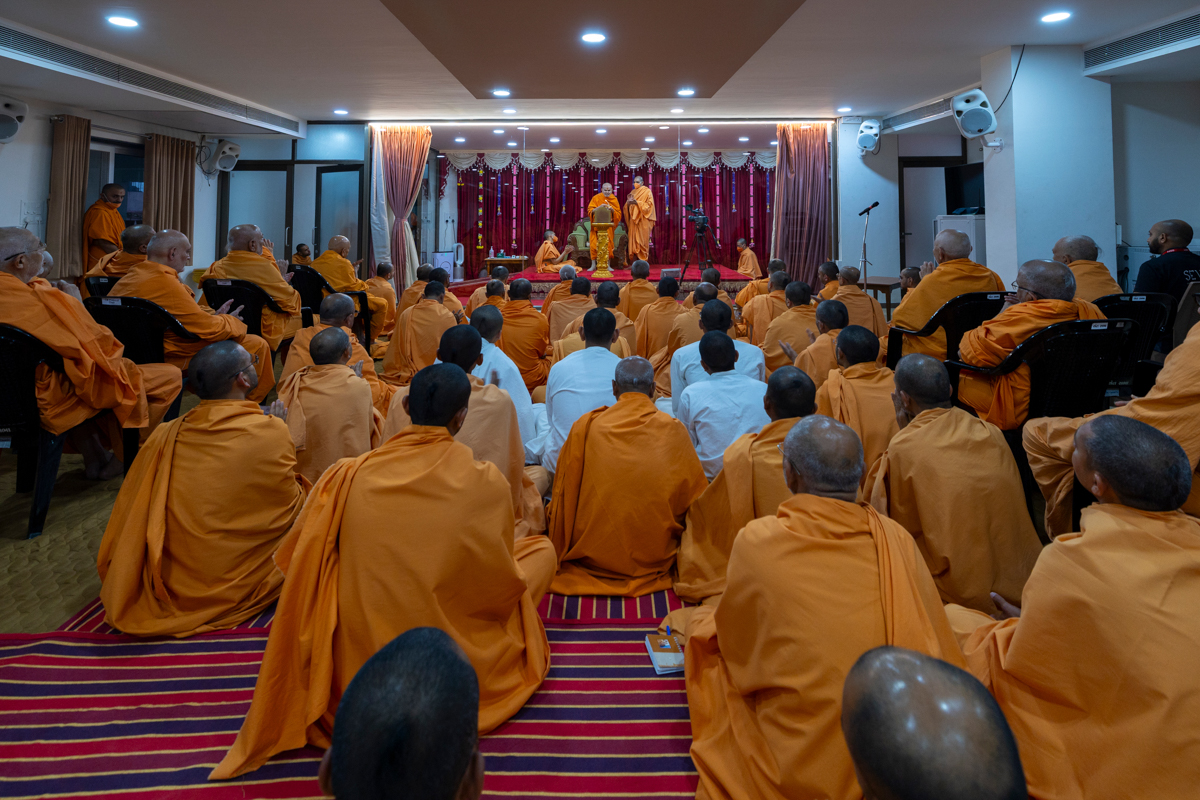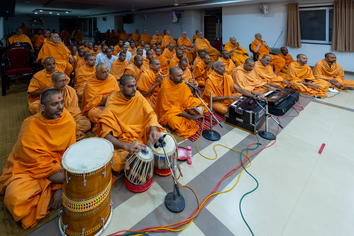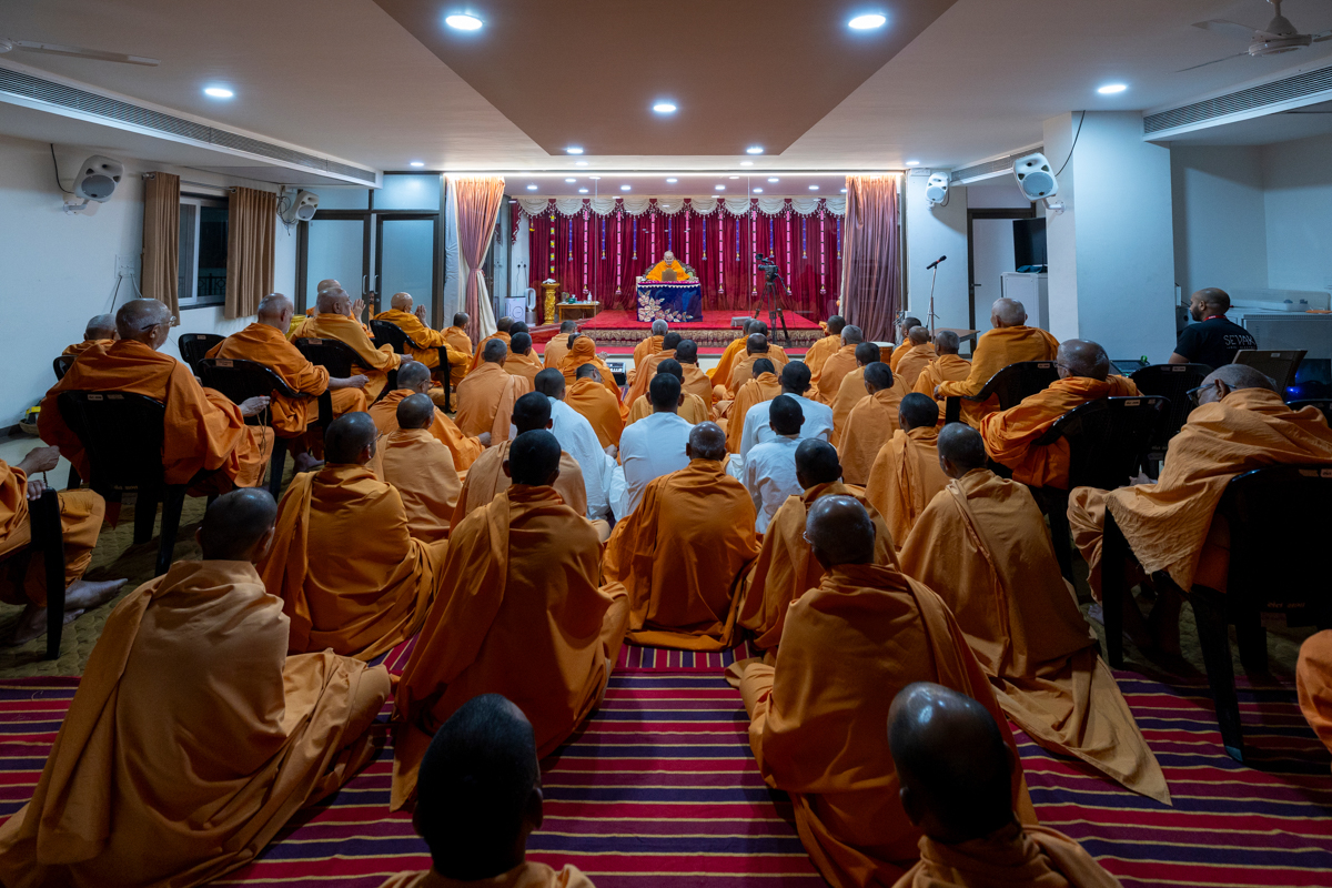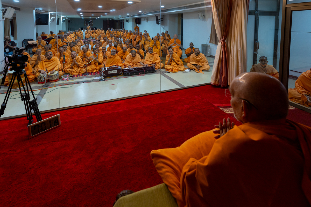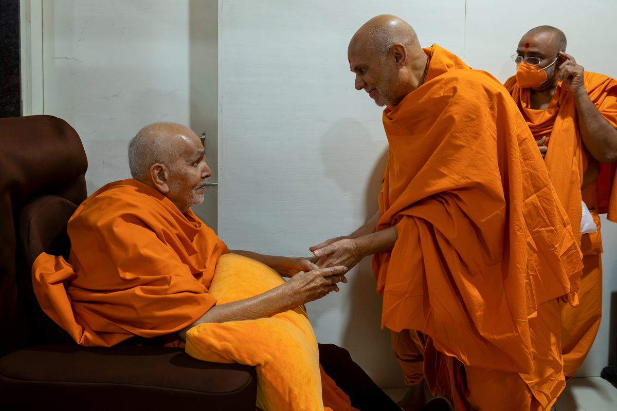 Pujya Tyagvallabh Swami, Pujya Viveksagar Swami and swamis doing darshan of Swamishri