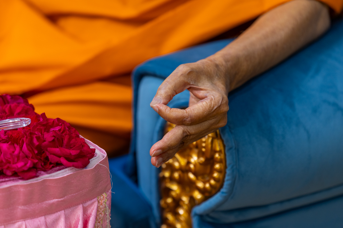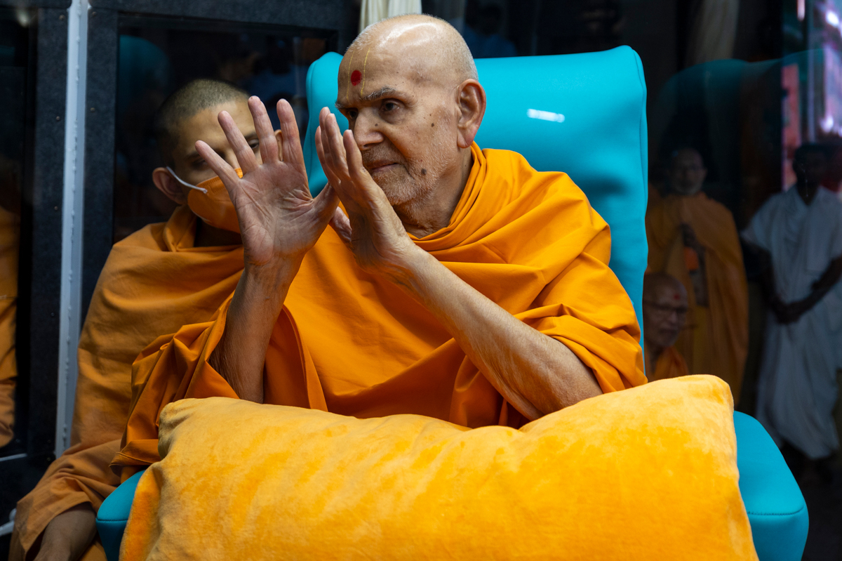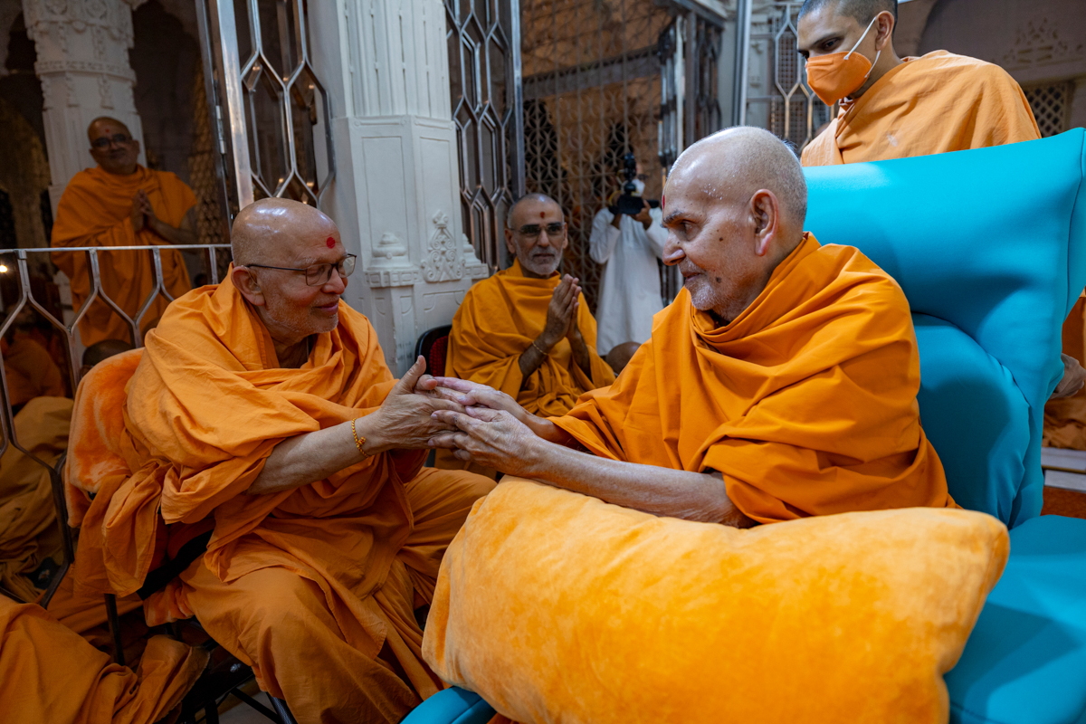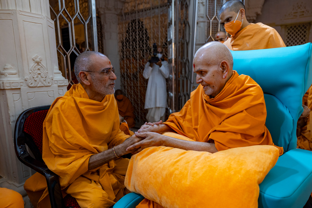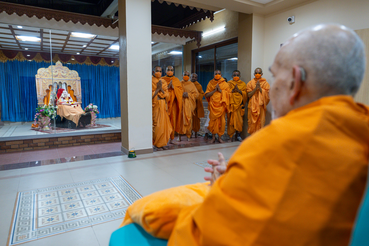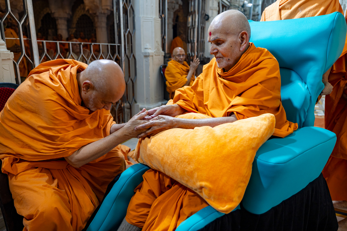 Pujya Bhaktipriya Swami (Kothari Swami) doing darshan of Swamishri