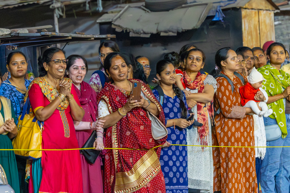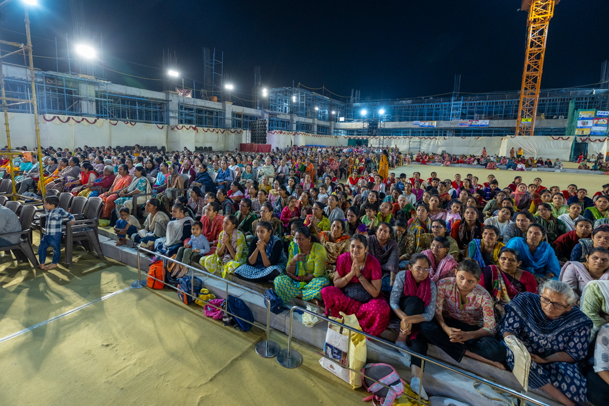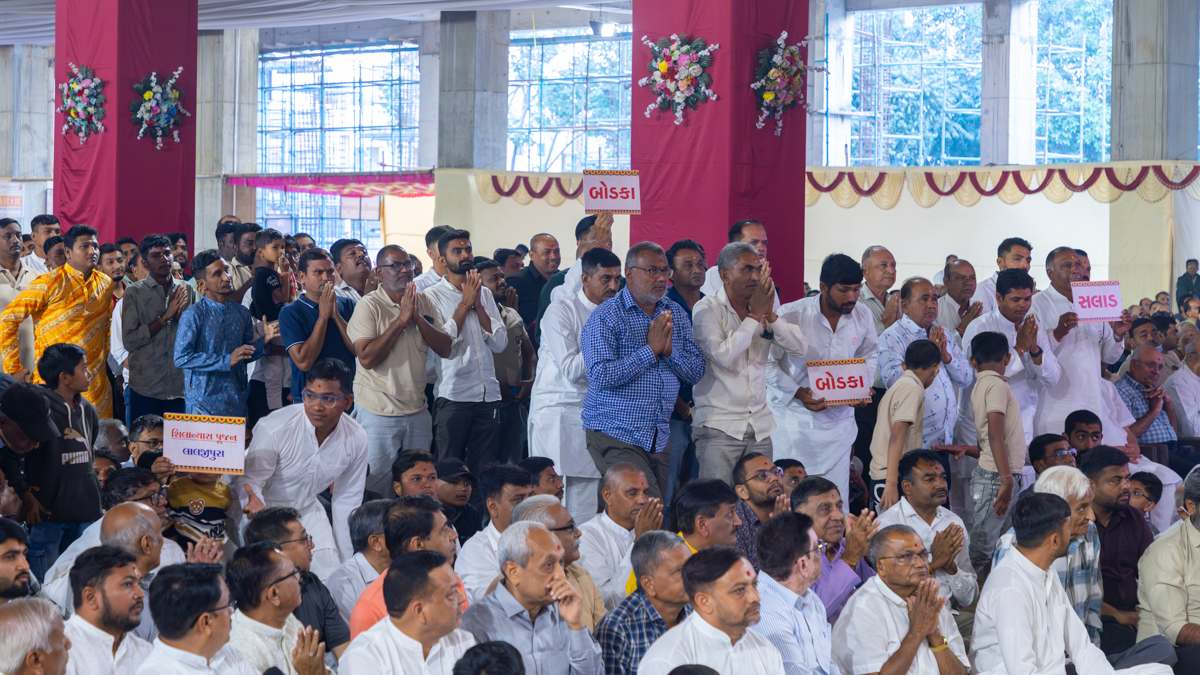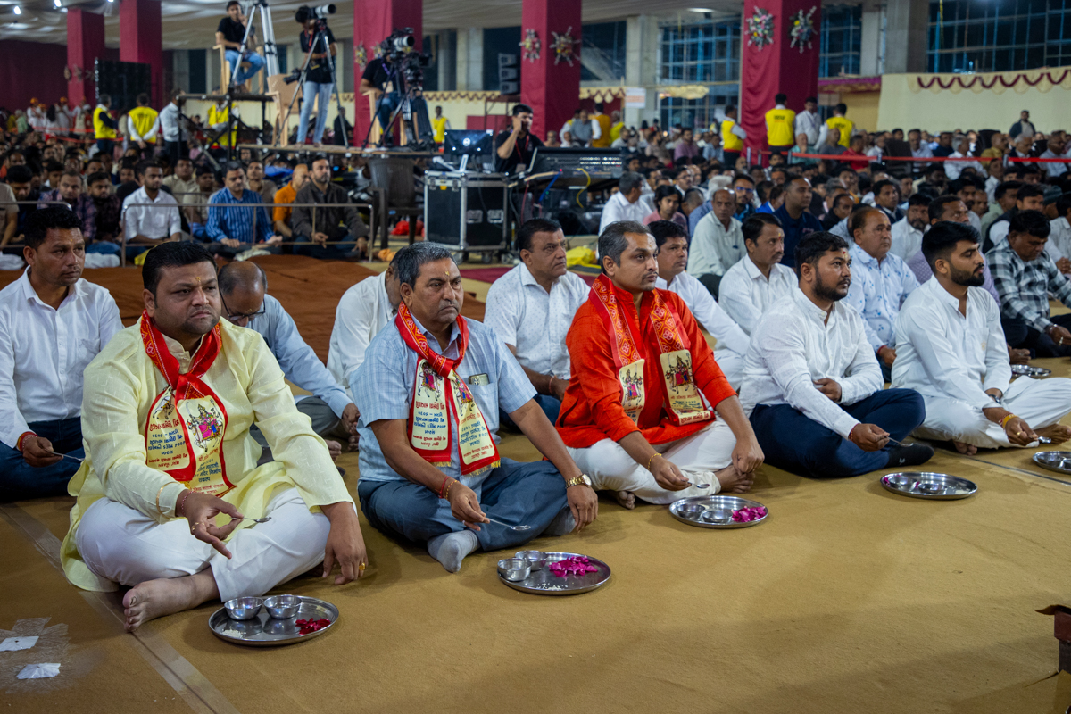 Devotees and well-wishers participate in the mahapuja rituals for the murti-pratishtha