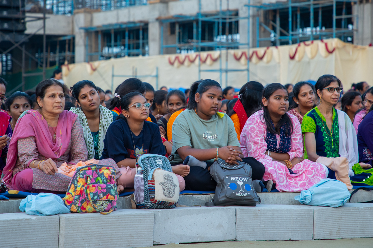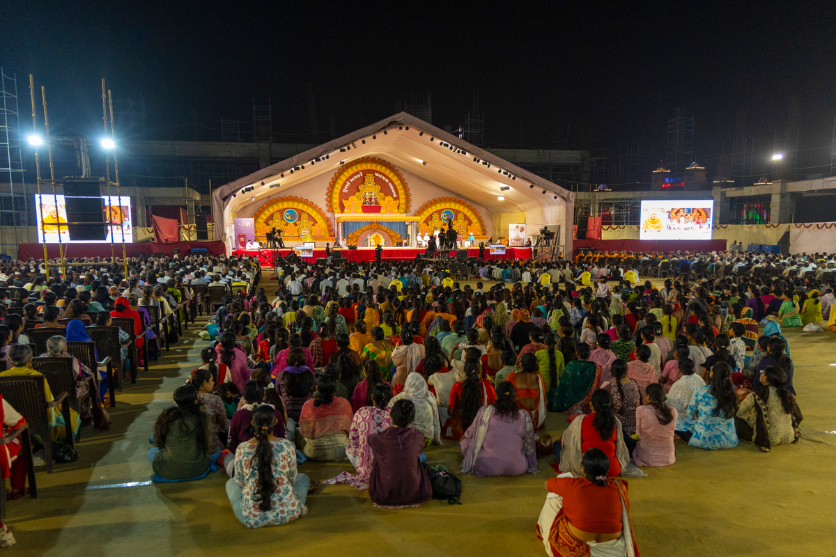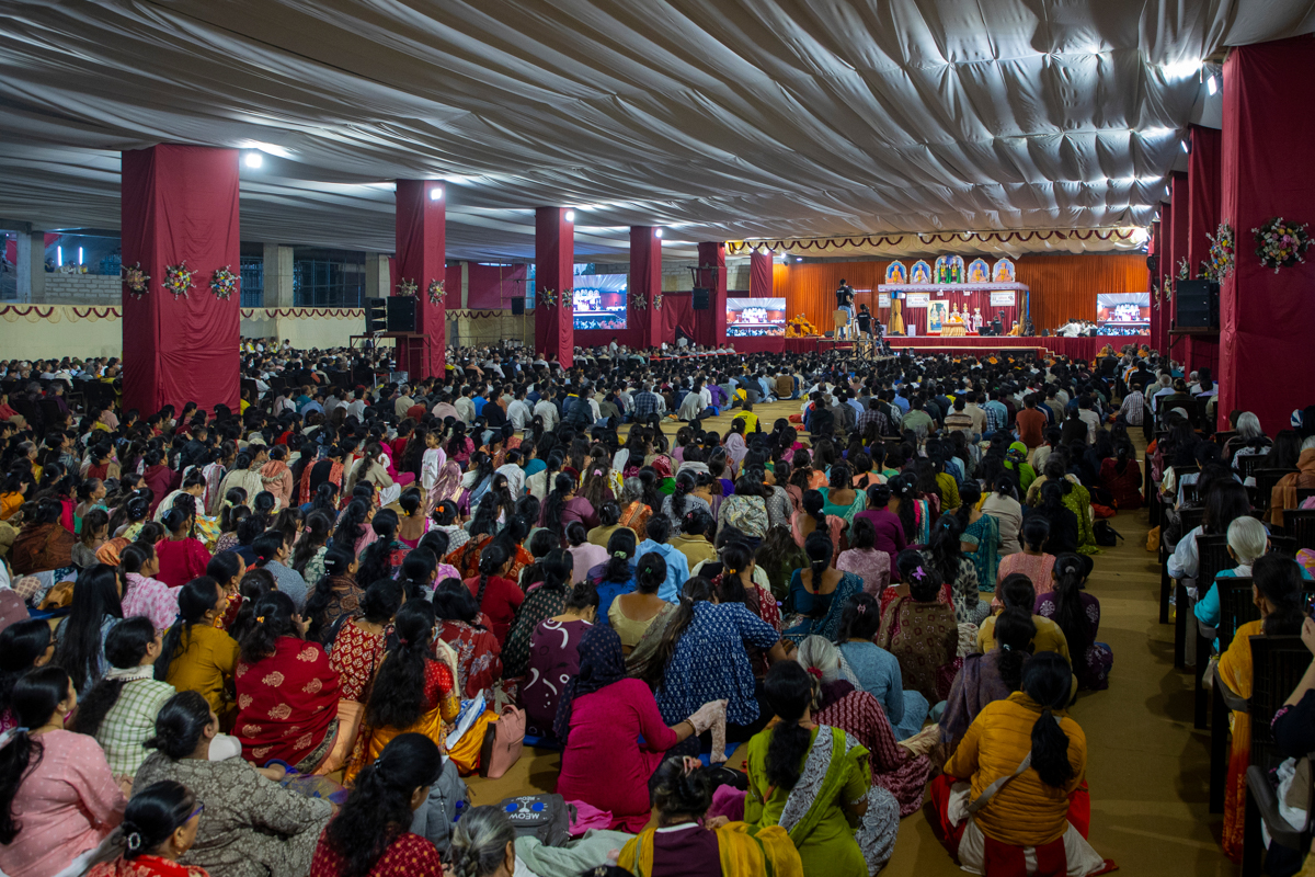 Devotees and well-wishers participate in the mahapuja rituals for the murti-pratishtha